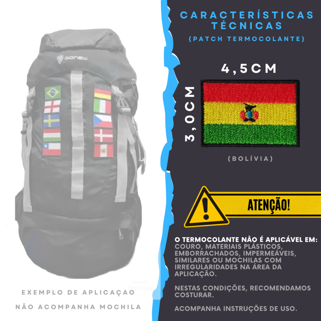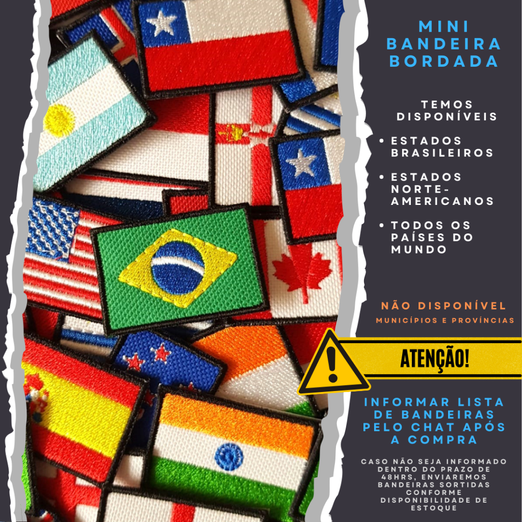 Kit 2 Mini Bandeiras Bordada Países e Estados 3,0x4,5cm Patch Bandeira Mochileiros