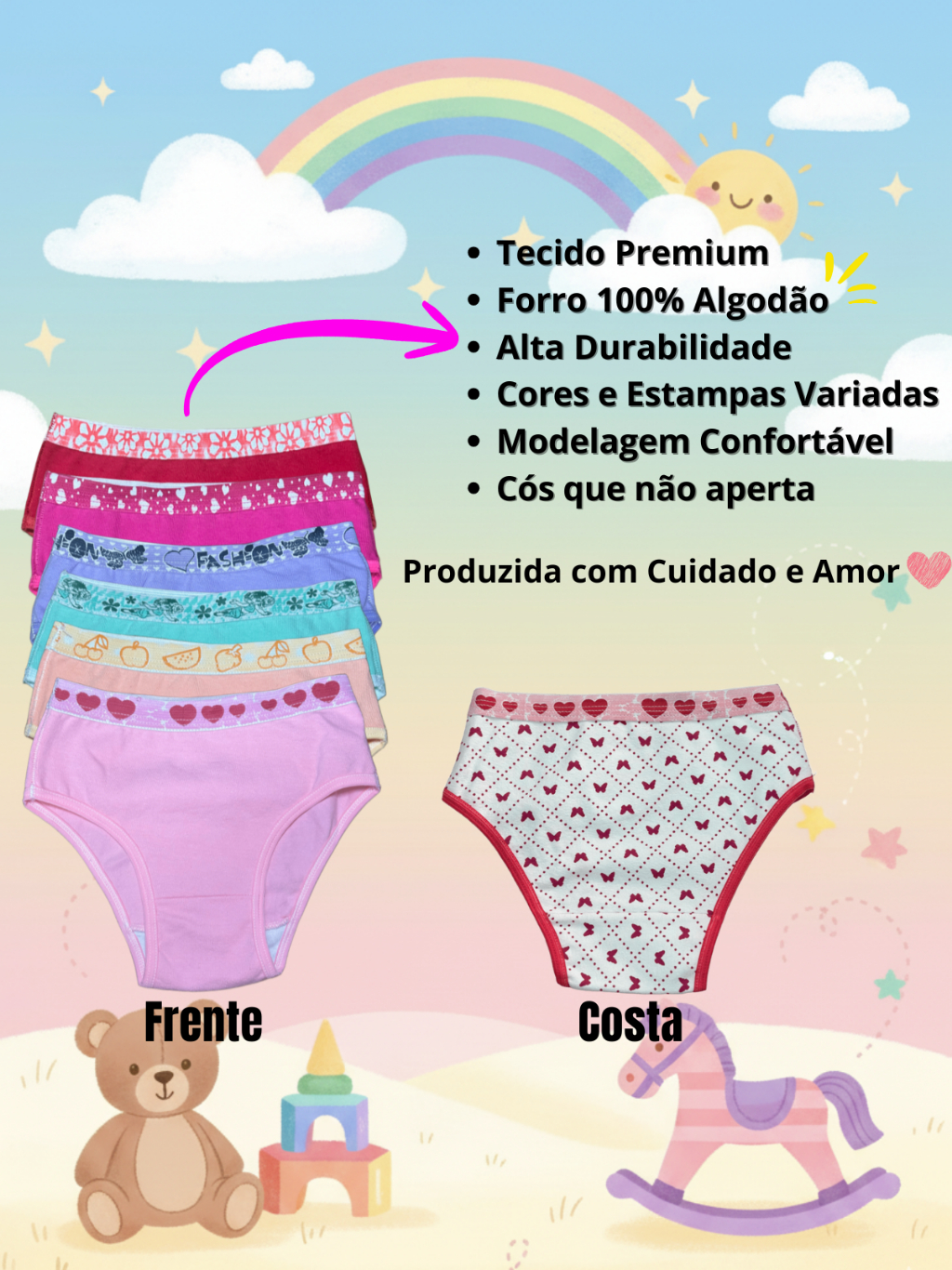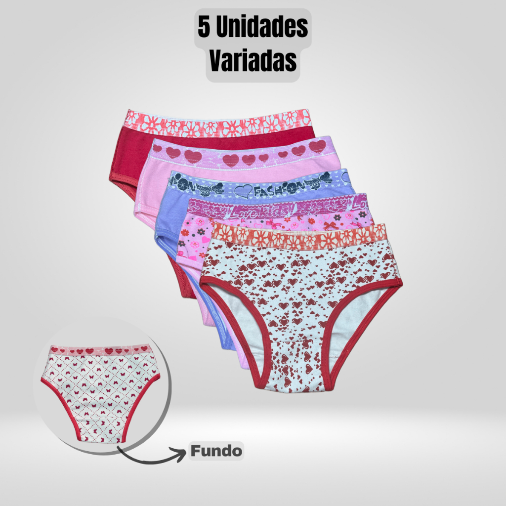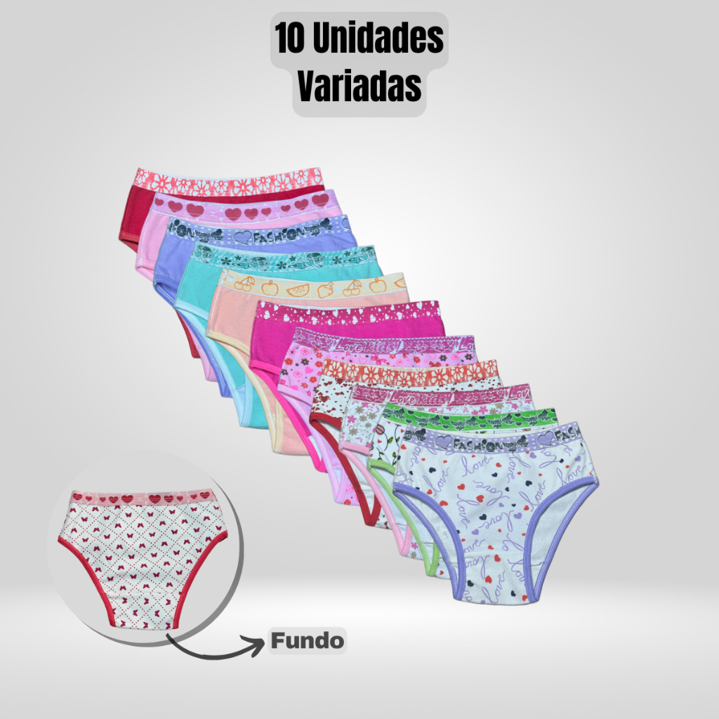 Kit 10 ou 5 Calcinha Infantil Menina Algodão Confortável Lisas e Estampadas