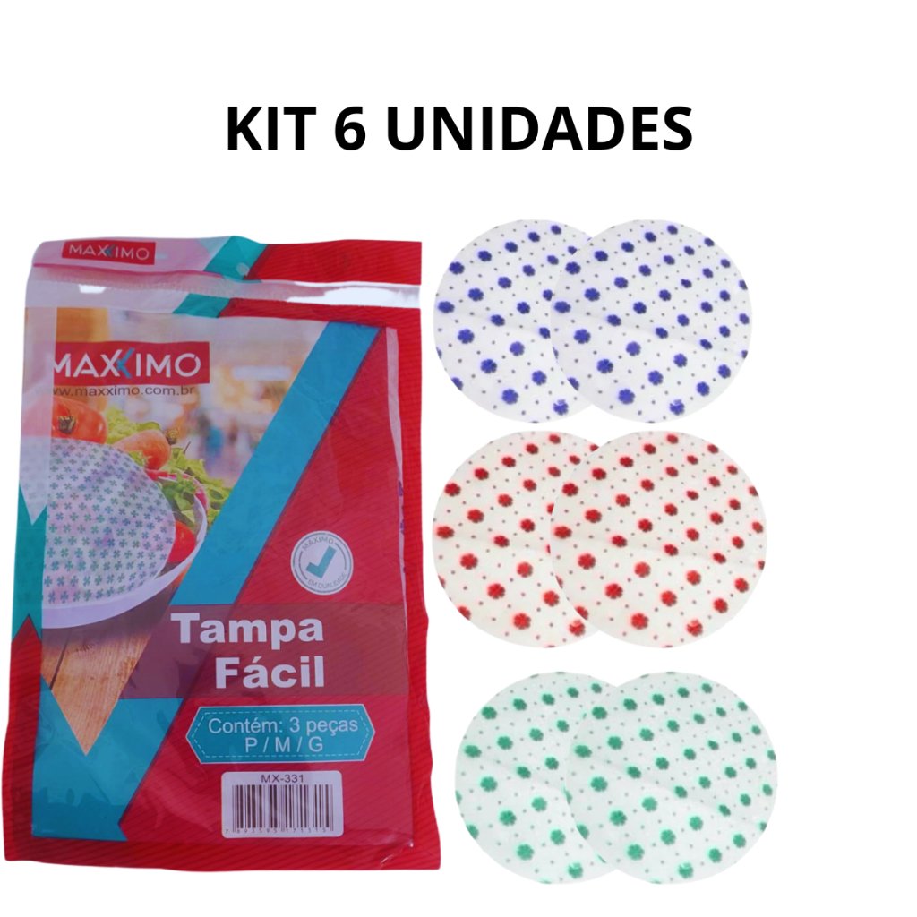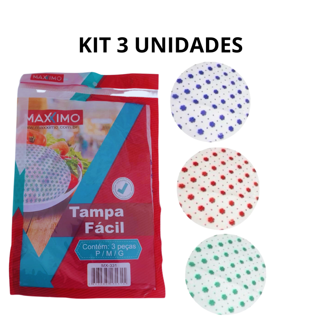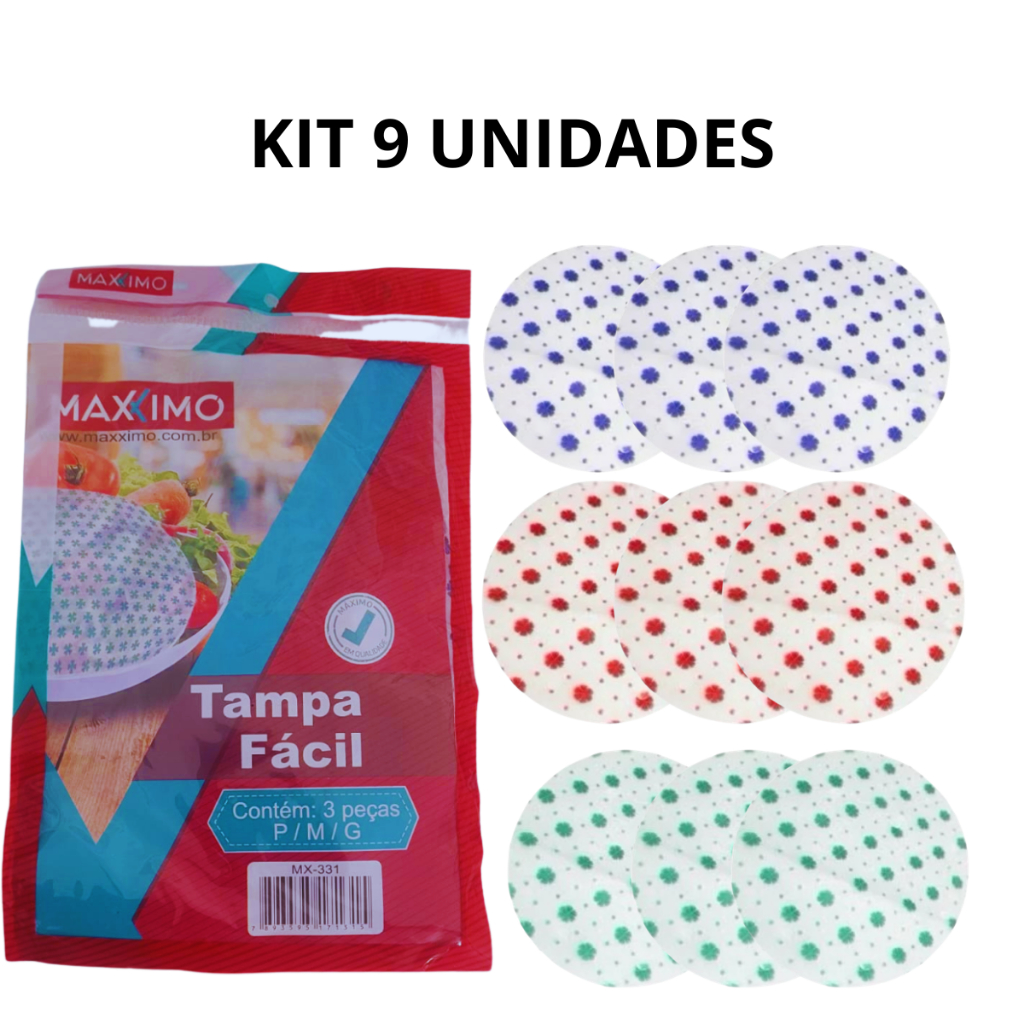 Kit com 3/ 6 ou 9 Tampas Fácil Alimentos c/ Elástico Reutilizável Manter alimentos protegidos – 3 Tamanhos Diferentes