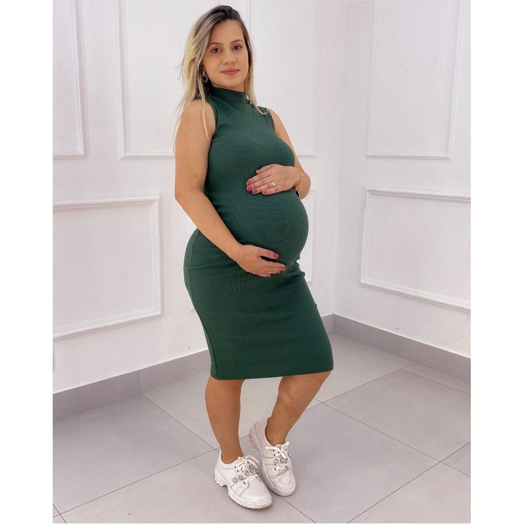 Vestido Feminino Ribana para Grávida Gola Alta Cavado Gestante