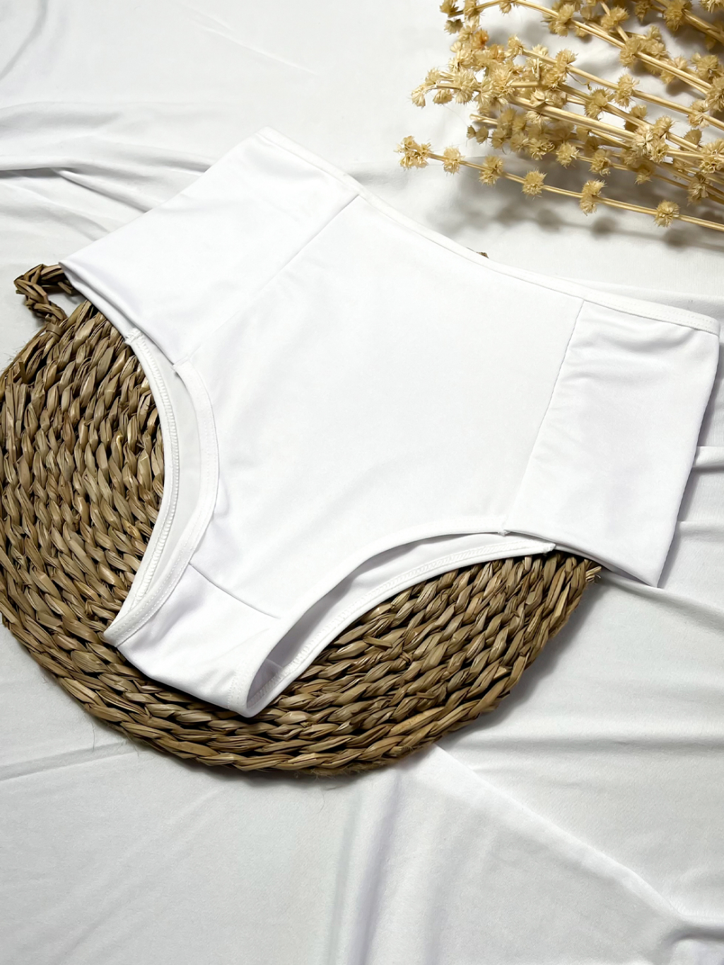 Kit 5 Calcinhas Brancas Cintura Alta Pala Dupla Forro 100% Algodão Nâo Marca Cós Alto Ultra Conforto