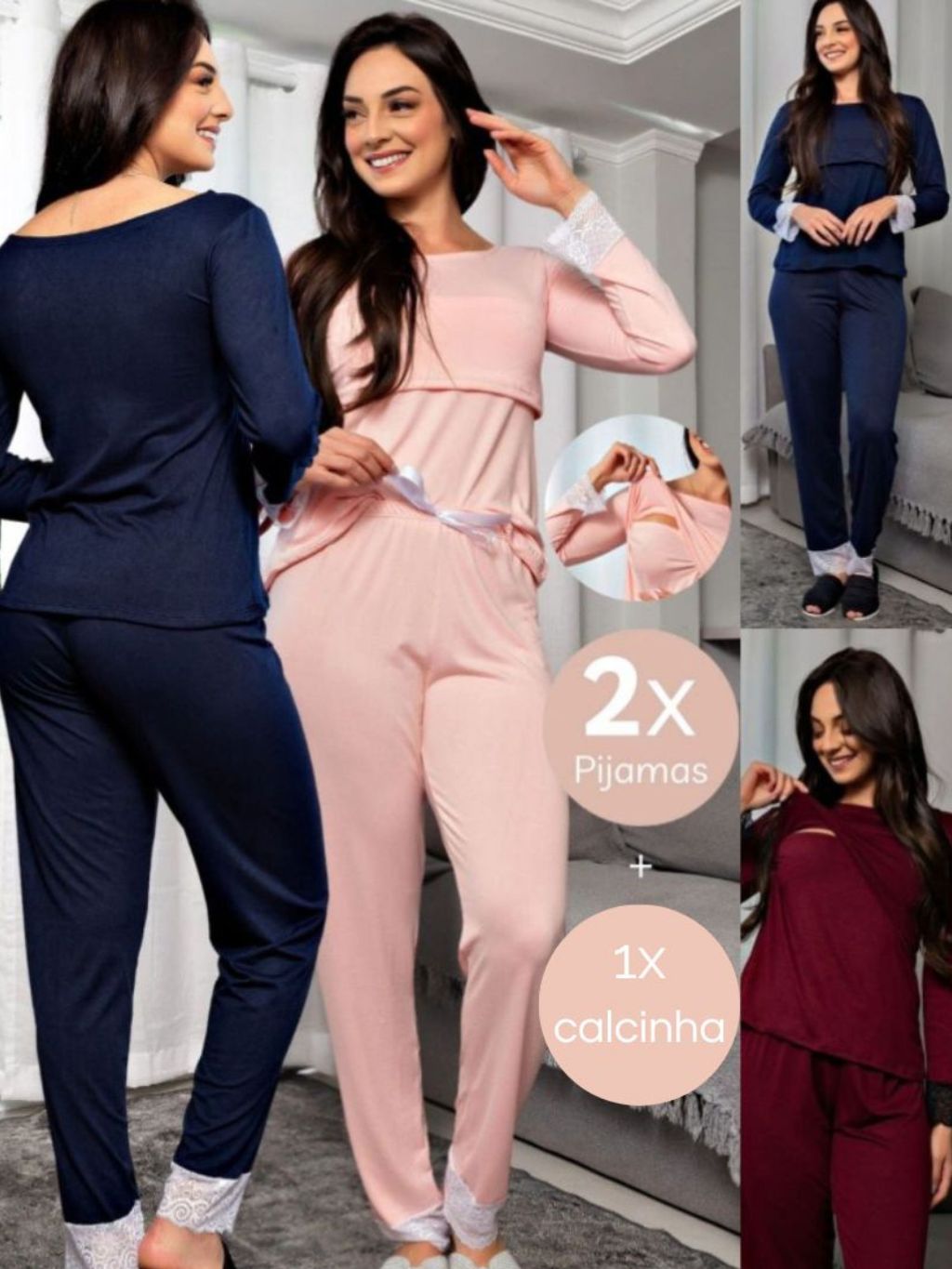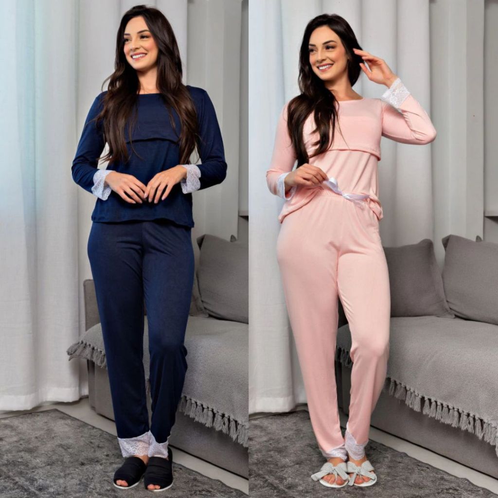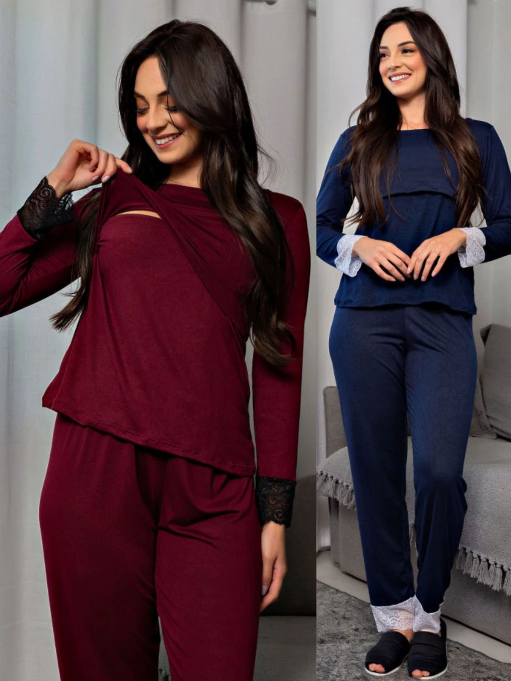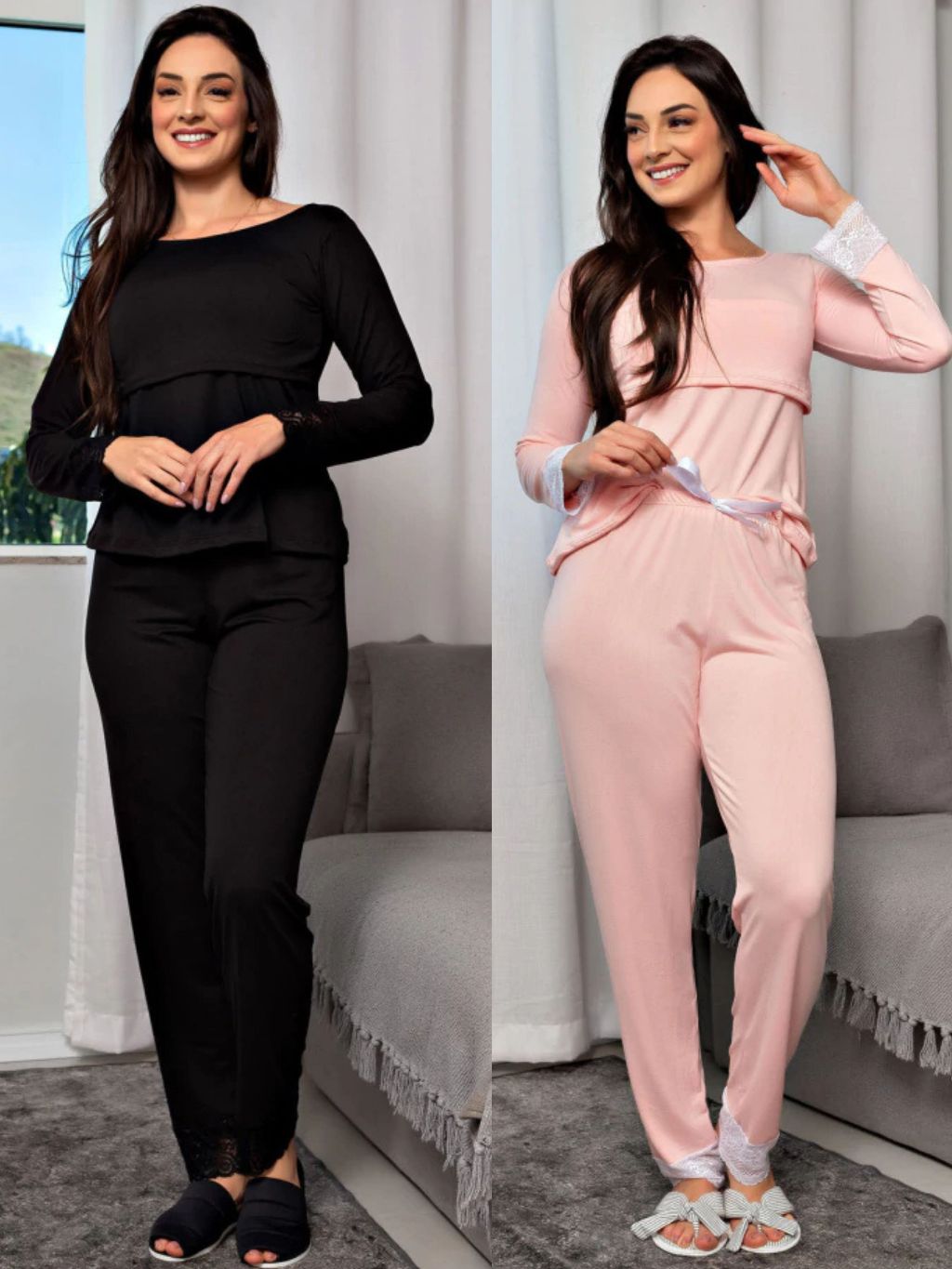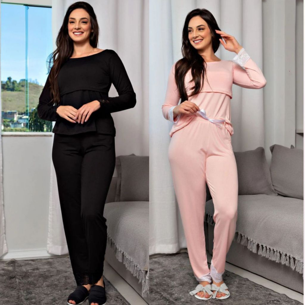Kit 2 Pijamas De Amamentação Para Gestantes Pós Parto