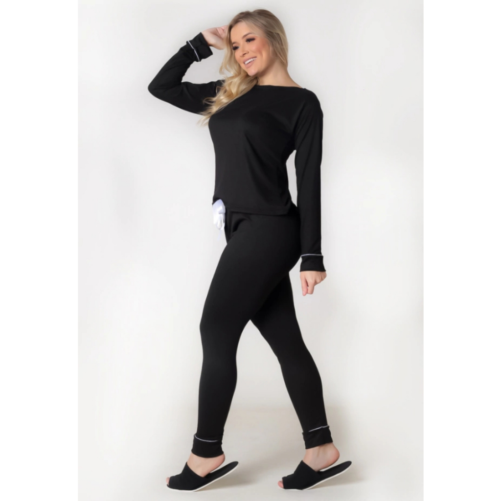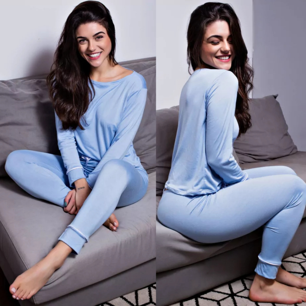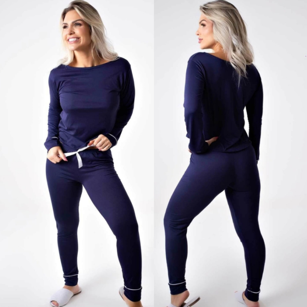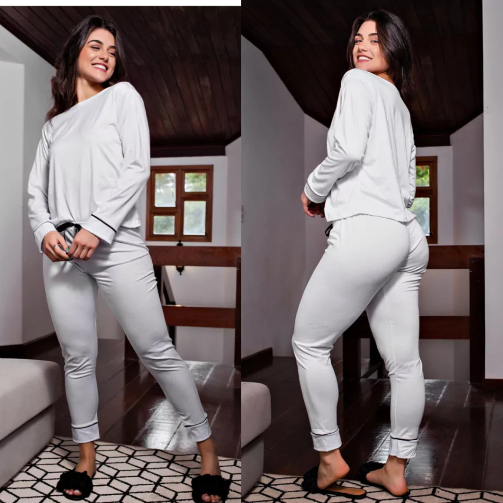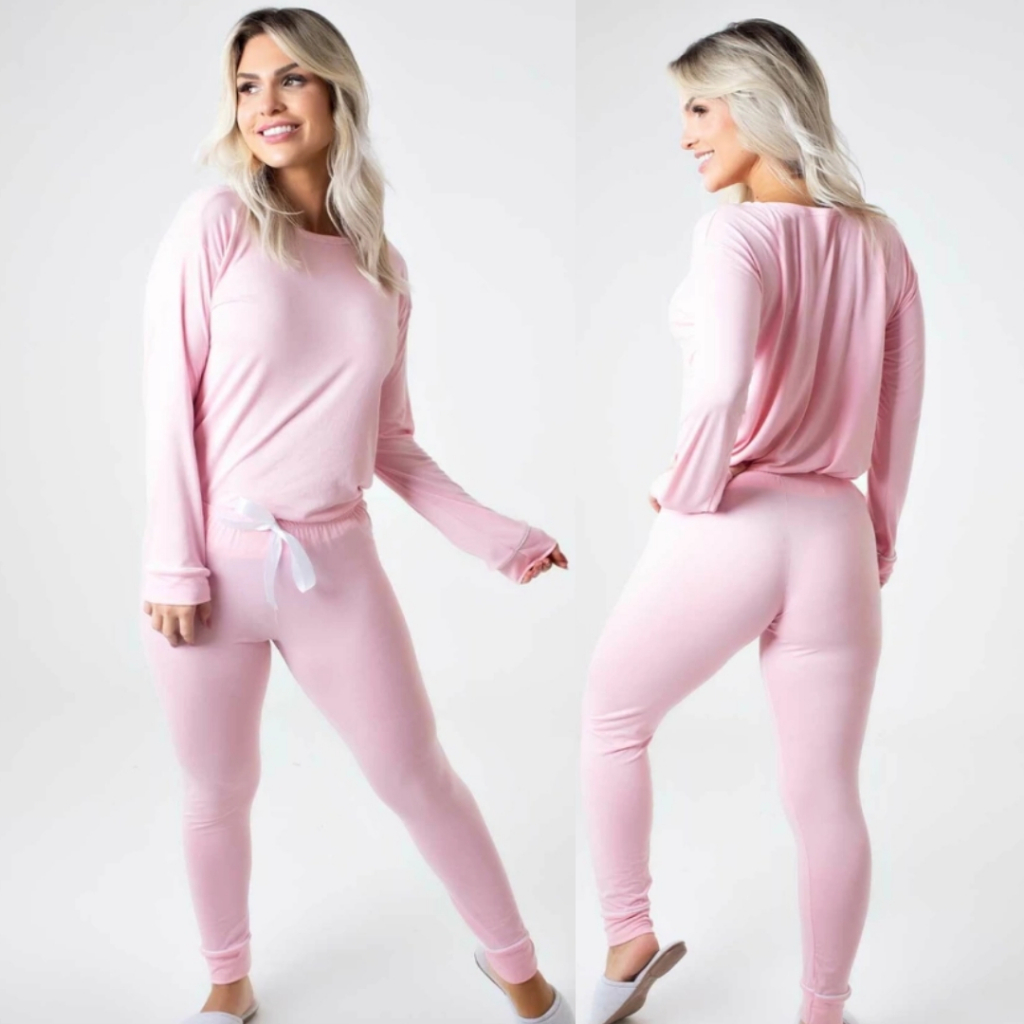 Pijama Inverno Manga Longa Calça Longa Quentinho Feminino Adulto Confortavel Frio de Dormir Slim