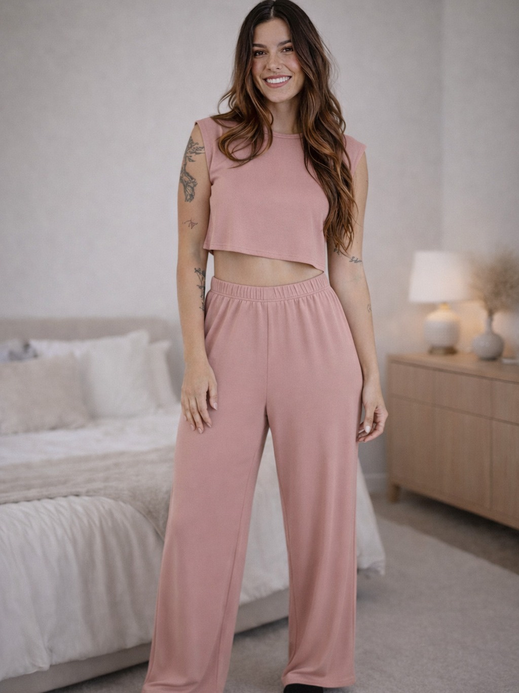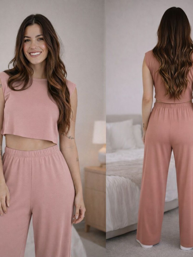 Conjunto Pijama Feminino Estiloso – Look Dormir e Sair | Confortável, Leve e Versátil Cropped e Calça
