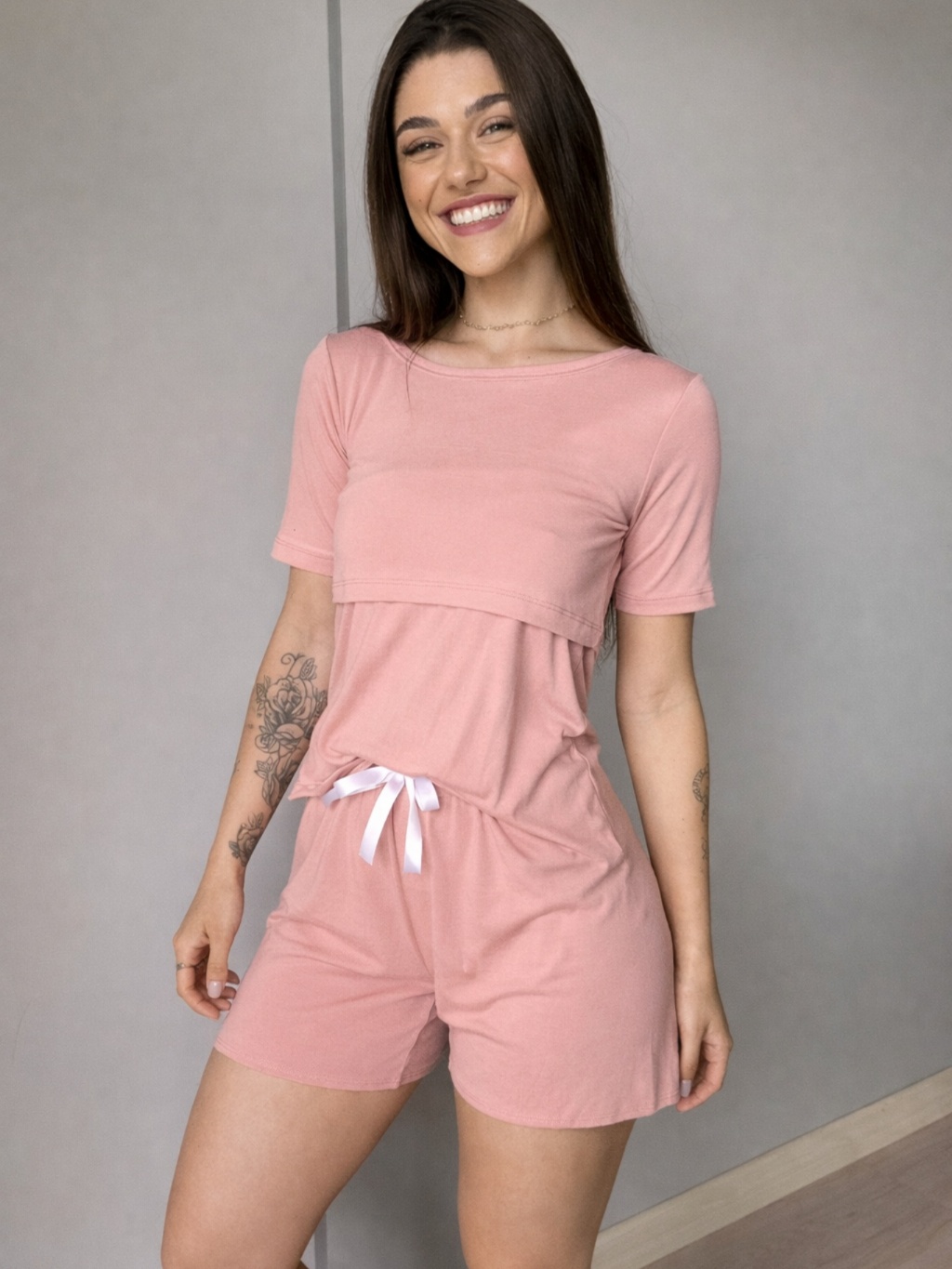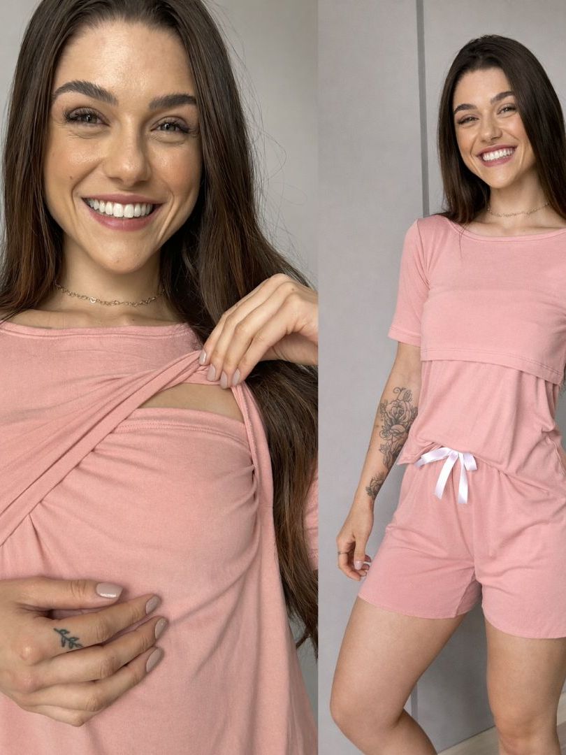 Pijama Amamentação Pós-Parto Feminino Abertura para Amamentar Tecido Macio Conforto Diário
