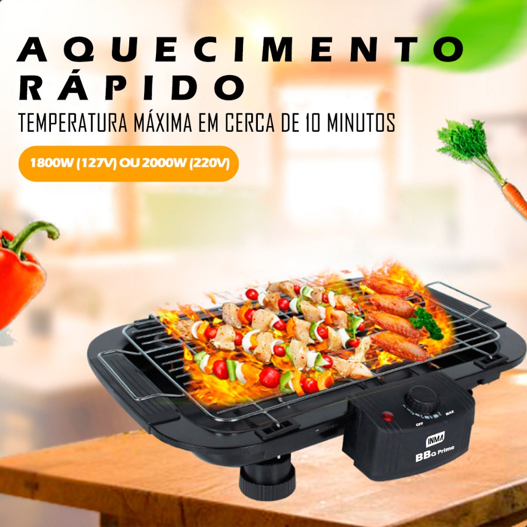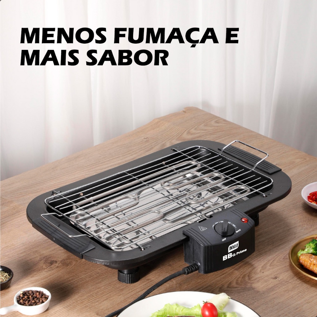 Churrasqueira Elétrica Portátil Sem Fumaça Gourmet Inox 1800W 2000w INMA Grelha Caminhoneiro