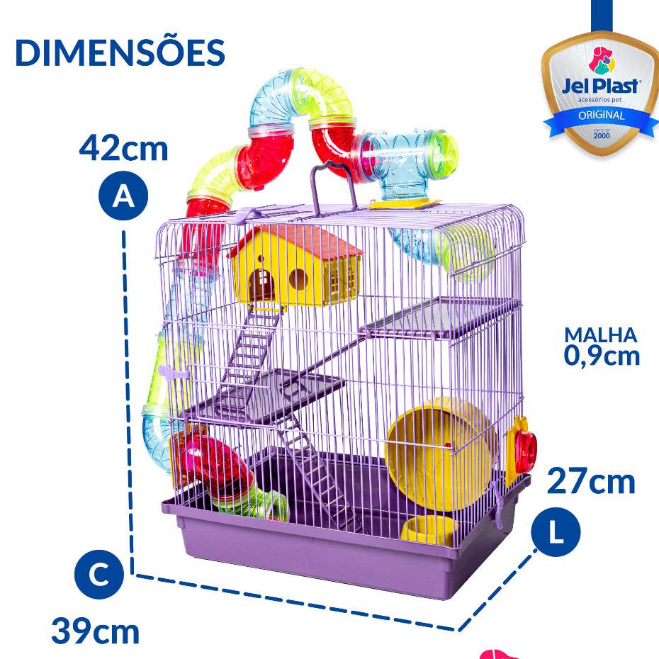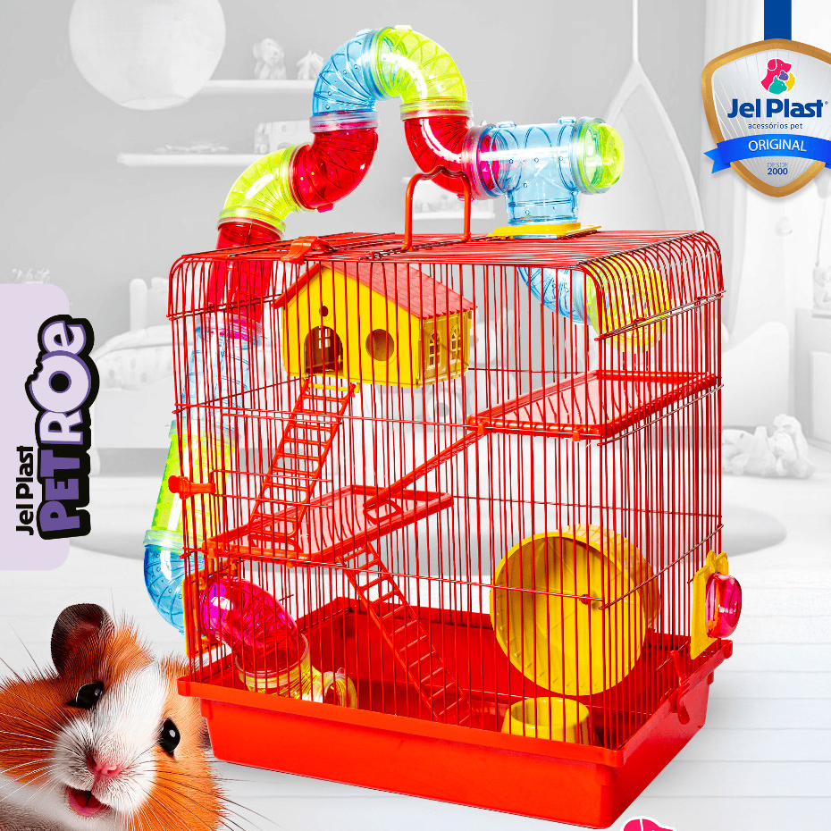 Gaiola Super Luxo 3 Andar Com Tubos Para Hamster Ramister Camundongo Chines Jel Plast
