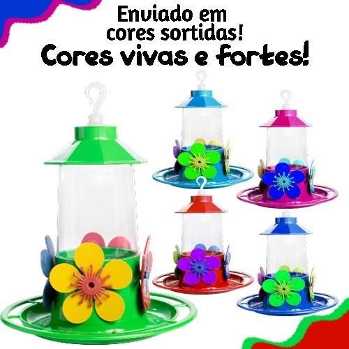 Kit 4 Bebedouro Para Pássaros Beija-flor Grande 250ml Colorido