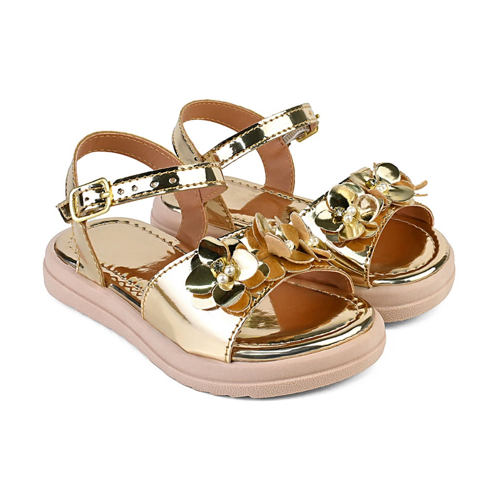 Sandália Infantil Menina Feminina Flor Strass Brilho Espelhado Tratorada Lançamento