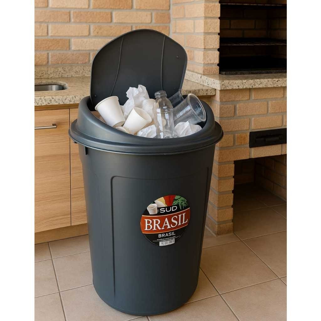 Lixeira Cesto 60 Litros Multiuso Tampa e Trava Higiênica Prédio Escola Edifícios Coleta Seletiva