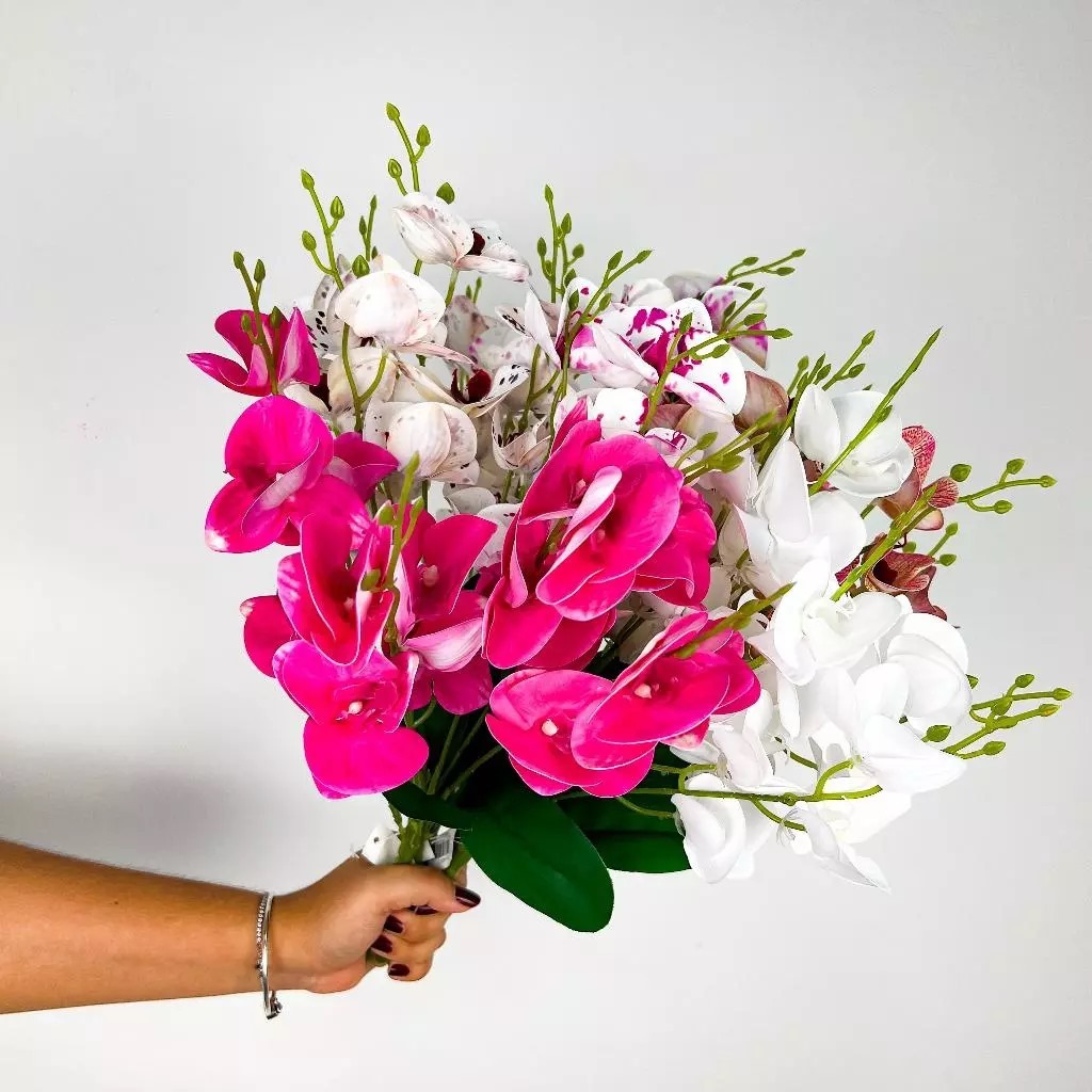 Buque de Orquídea Borboleta Artificial Flor Silicone P/ Casamento, Casa, Decoração - A-540