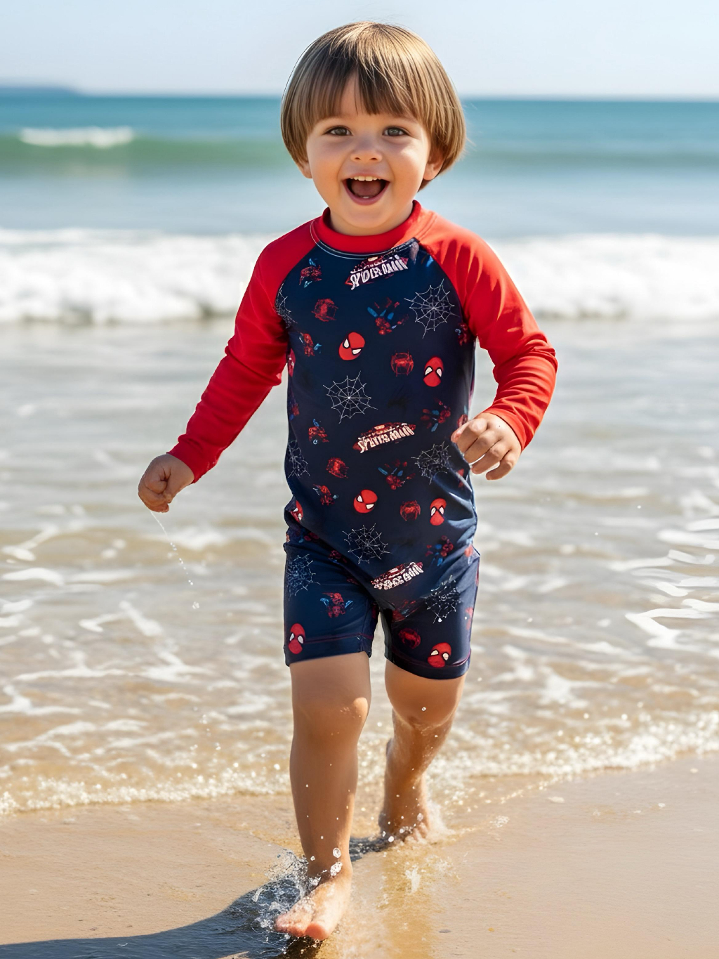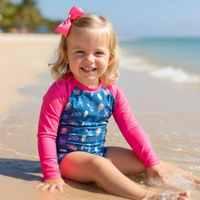 Traje de Banho Menino 1 a 6 Anos Macaquinho Confortável Praia Piscina Natação Manga Longa Uv