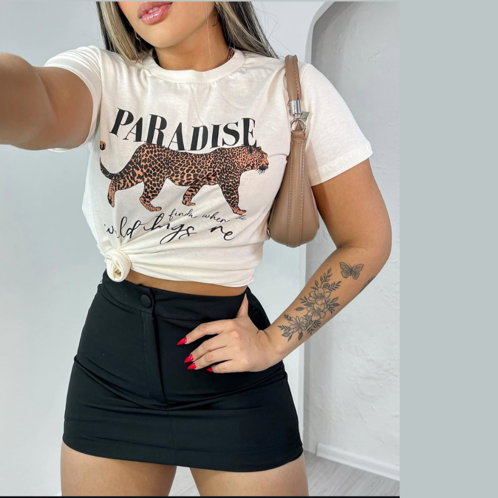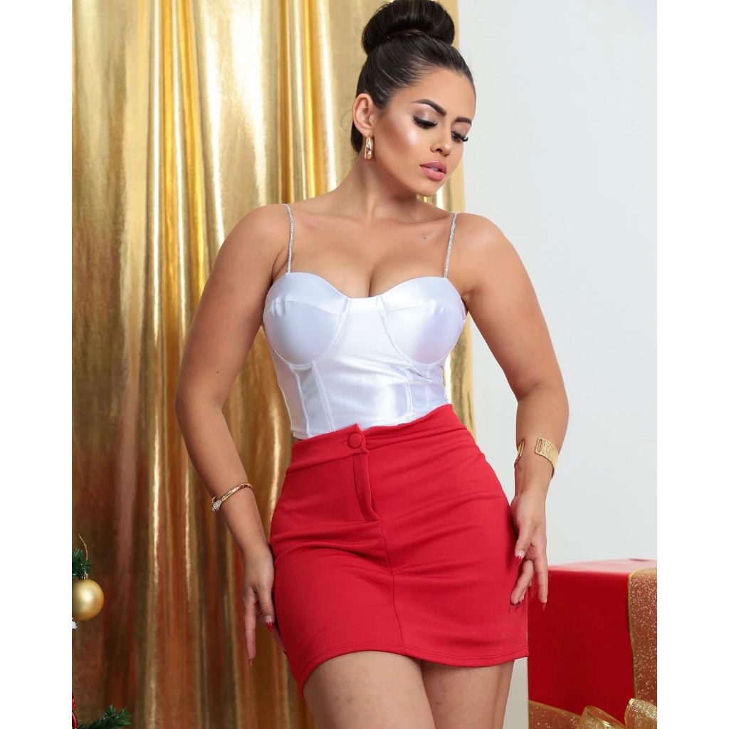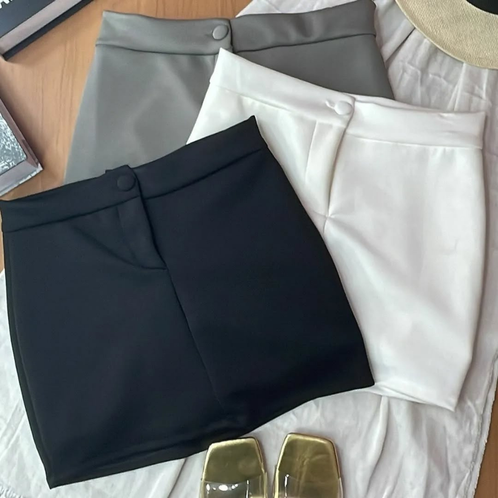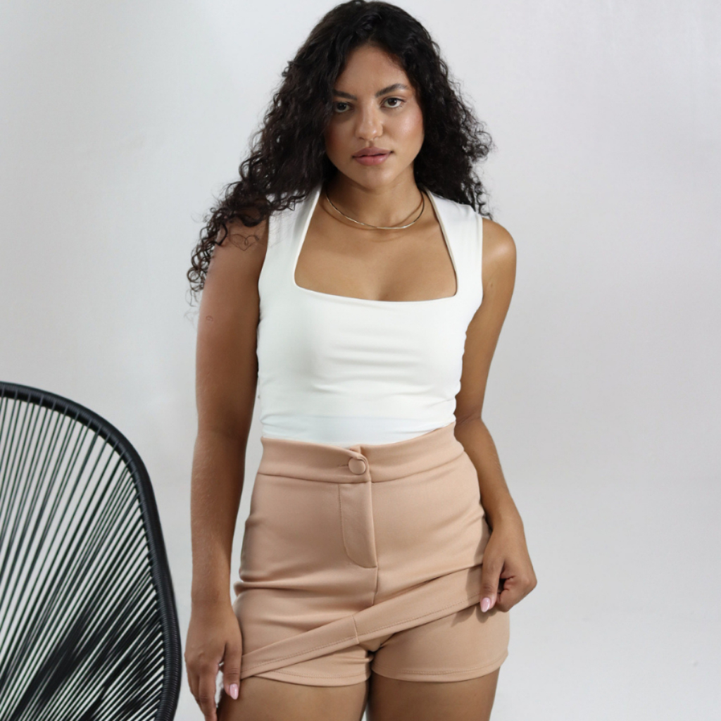 Short Saia Corte Alfaiataria Feminino Cintura Alta Tecido Térmico Dias Quentes e Frios Tendência Moda Blogueira