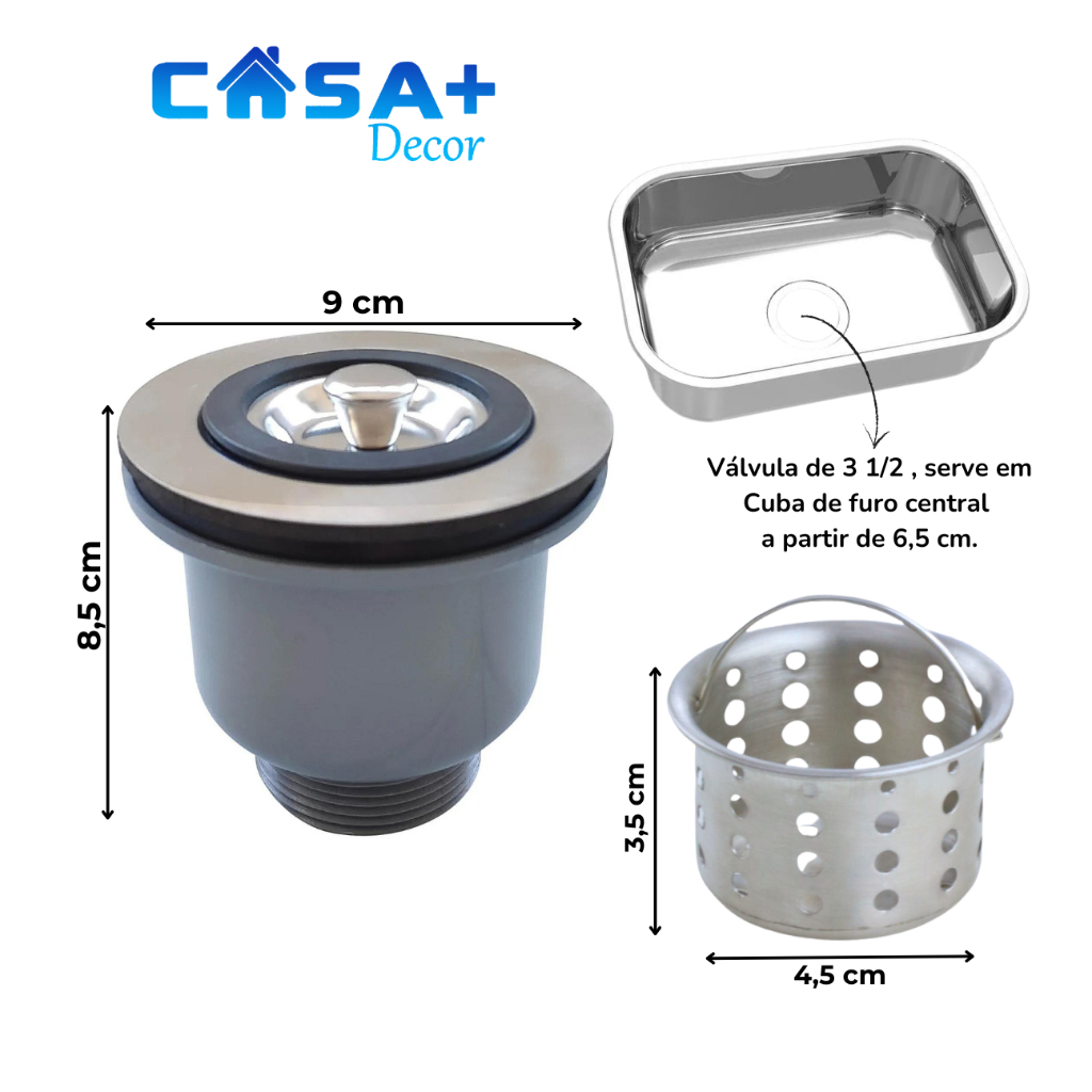 Válvula 3 1/2 Pia Cozinha Cesto Higiênico Ralo Pia Basket