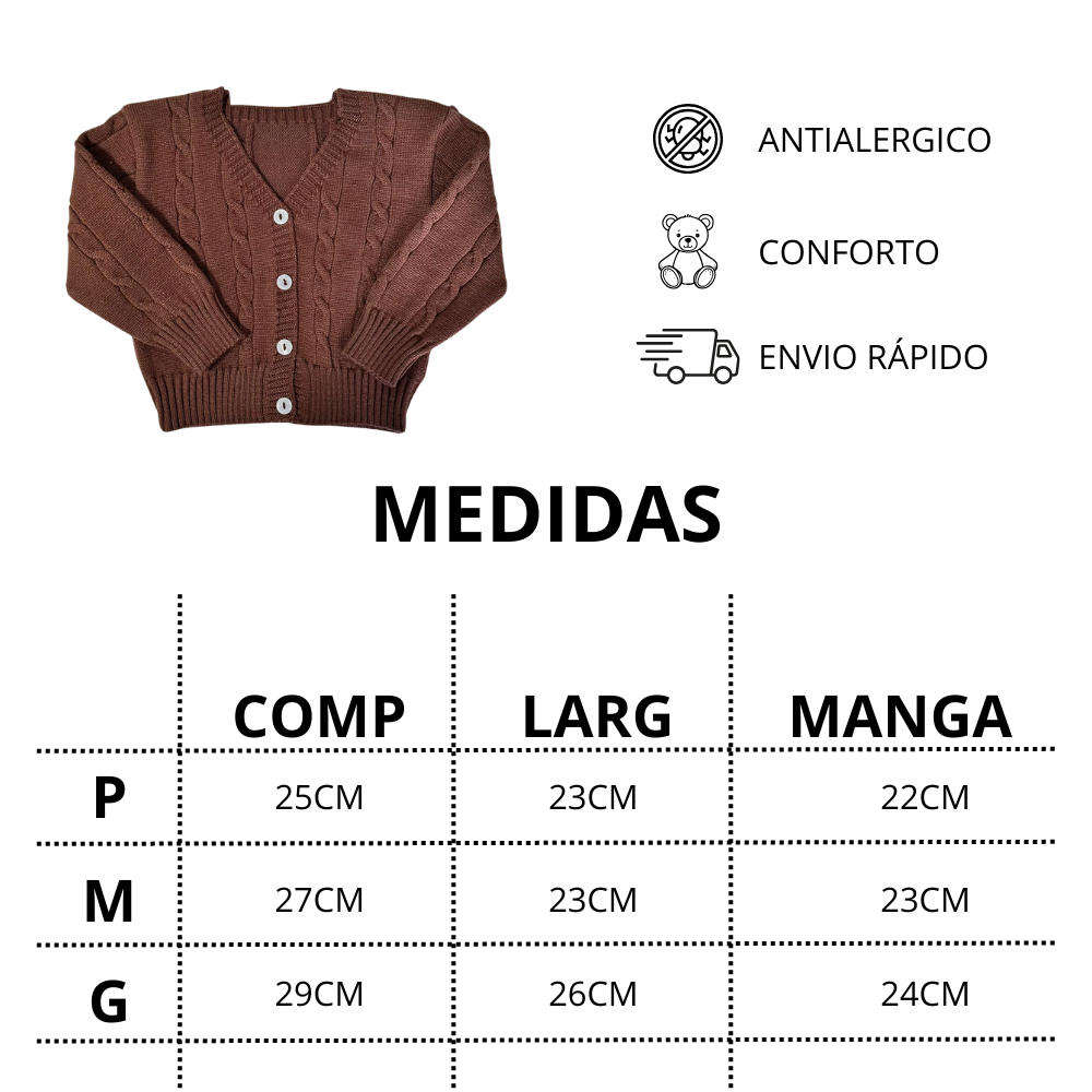 Casaco Bebe Infantil Menino e Menina Casaquinho Tranças Botões Confortável Quentinho