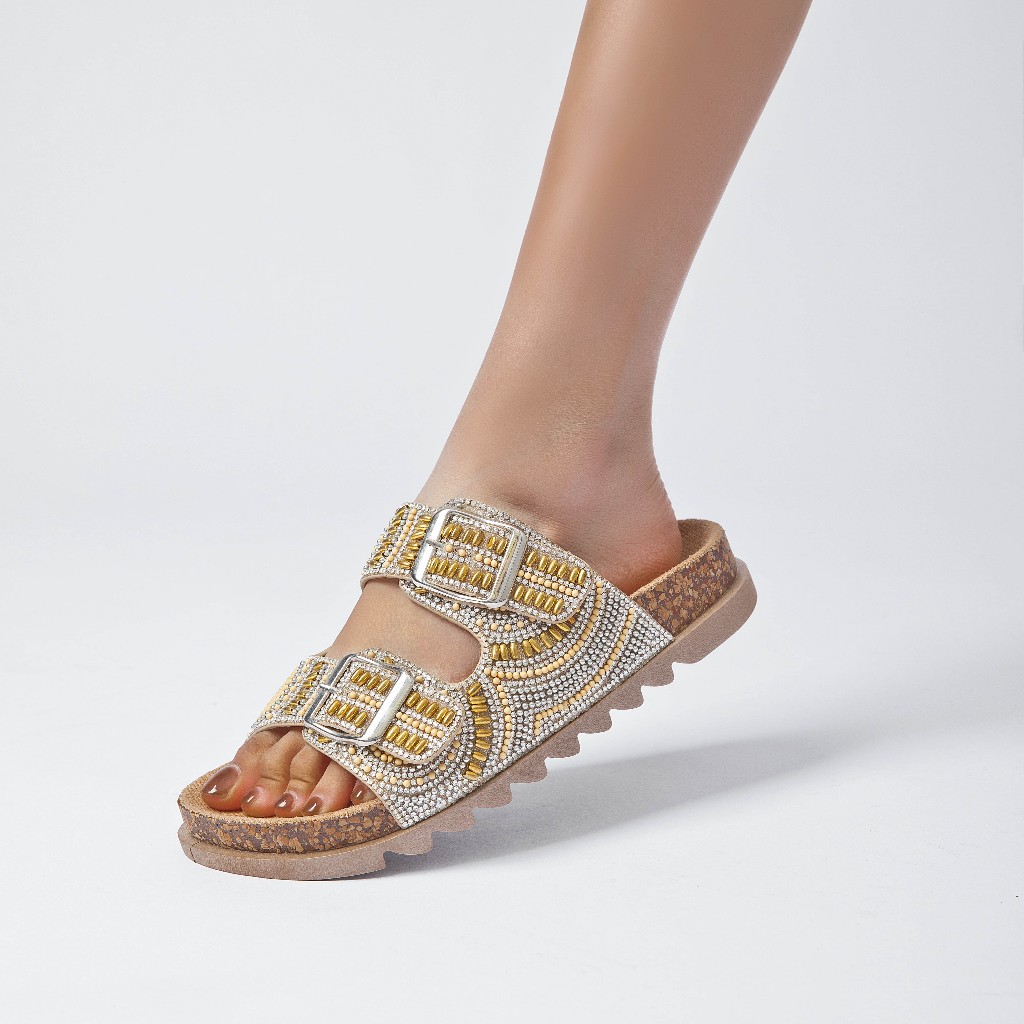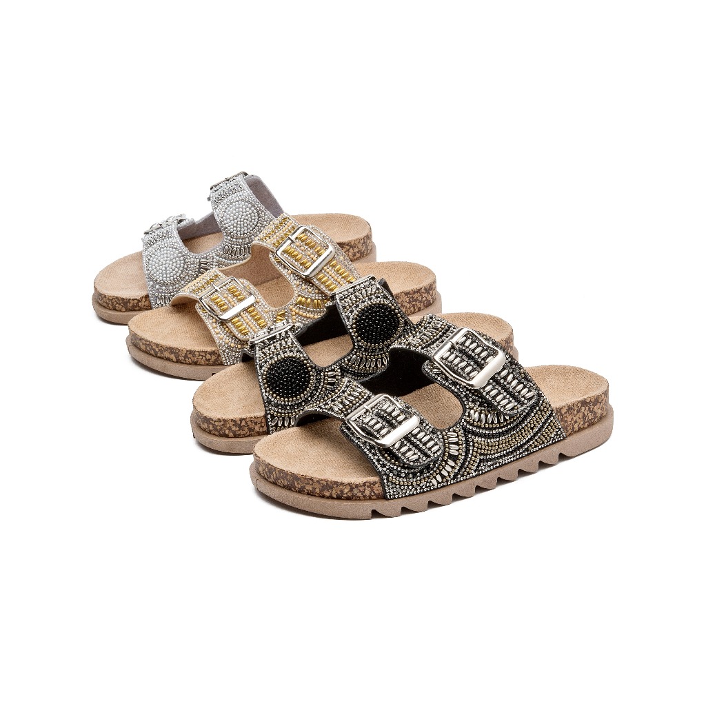 Sandália Feminina Rasteirinha Tamanco Papete Flat Costura de strass Original confortável
