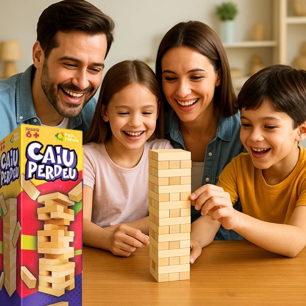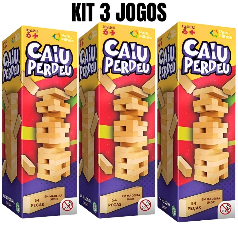 KIT 1/2/3 Jogo Caiu Perdeu Pais & Filhos de Madeira Jogo da Torre de Madeira 54 Peças Desenvolve Coordenação Motora