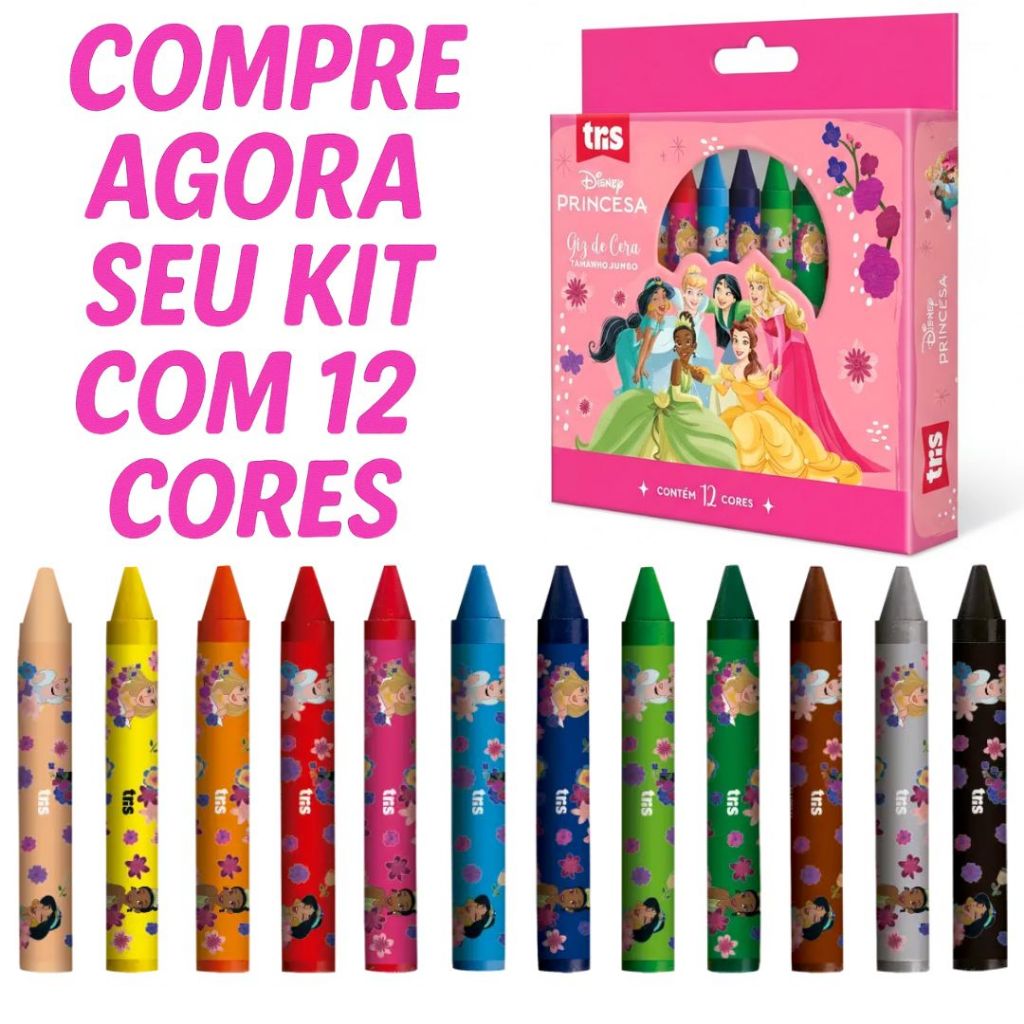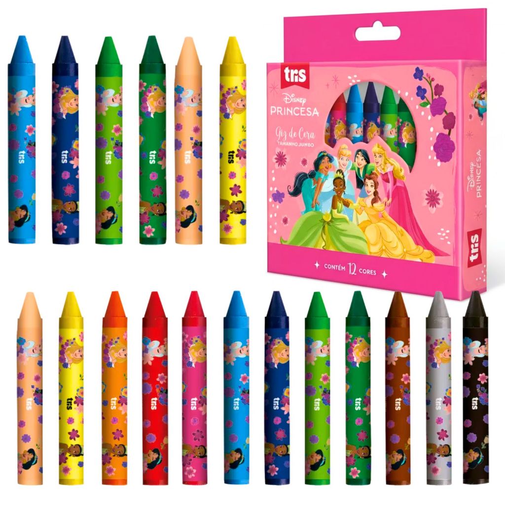 Giz De Cera Escolar Infantil Jumbo Grosso Com Rótulo Protetor Material Escolar Princesas Disney