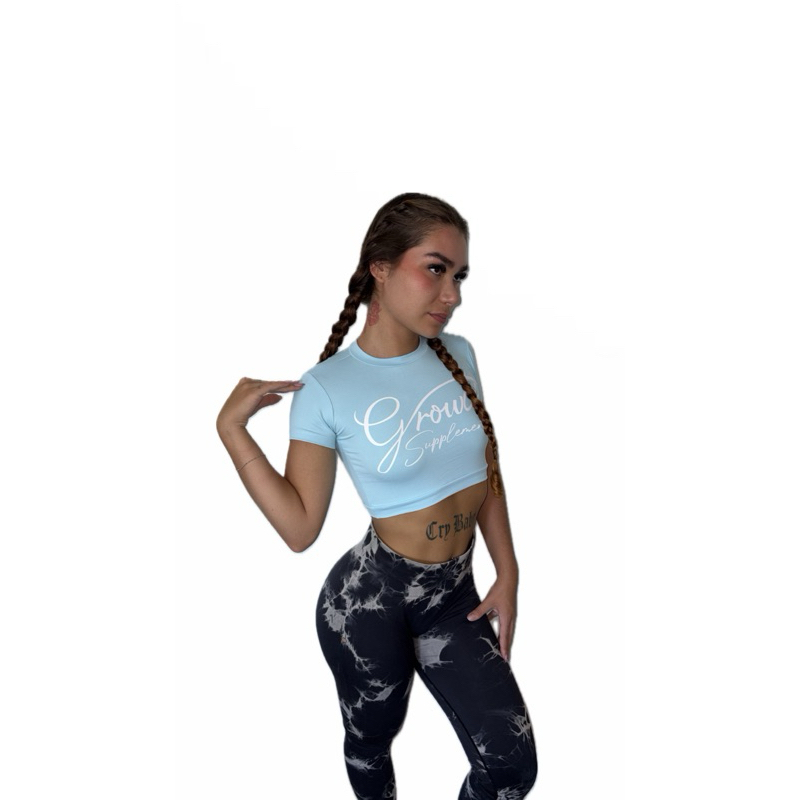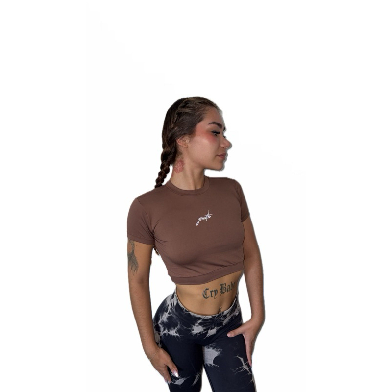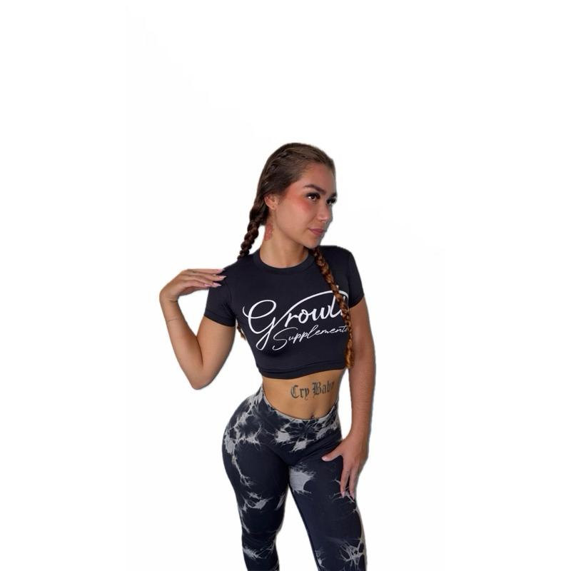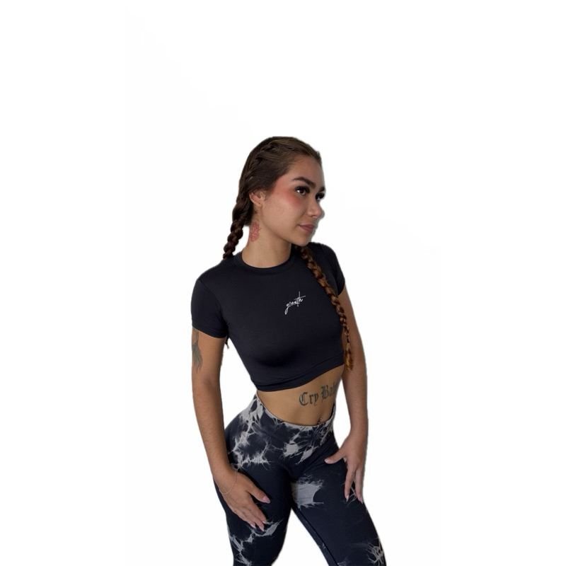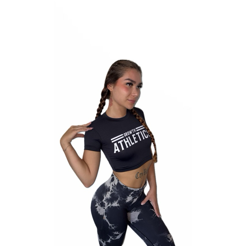 Cropped Fitness Feminino Proteção UV Manga Curta Academia Tecido Poliamida Compressão