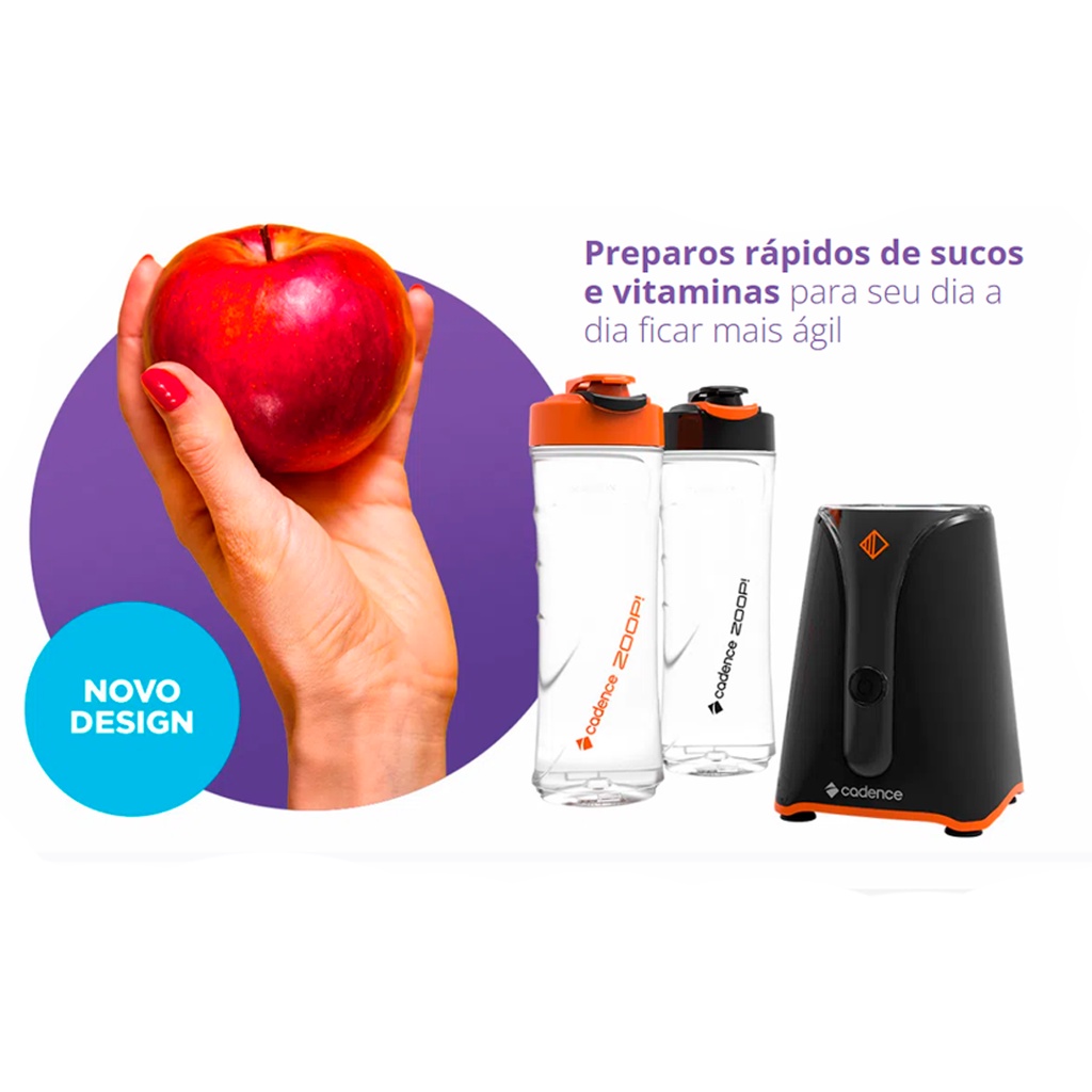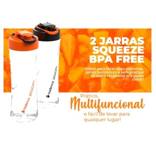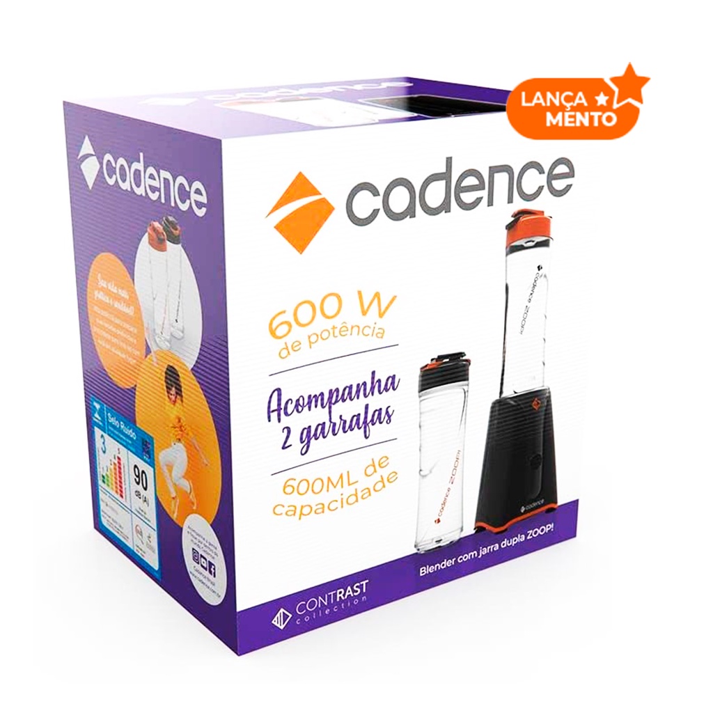 Liquidificador Portátil BLD701 Cadence Blender com 2 Jarras 500ml Academia Whey Shake 600W Potente
