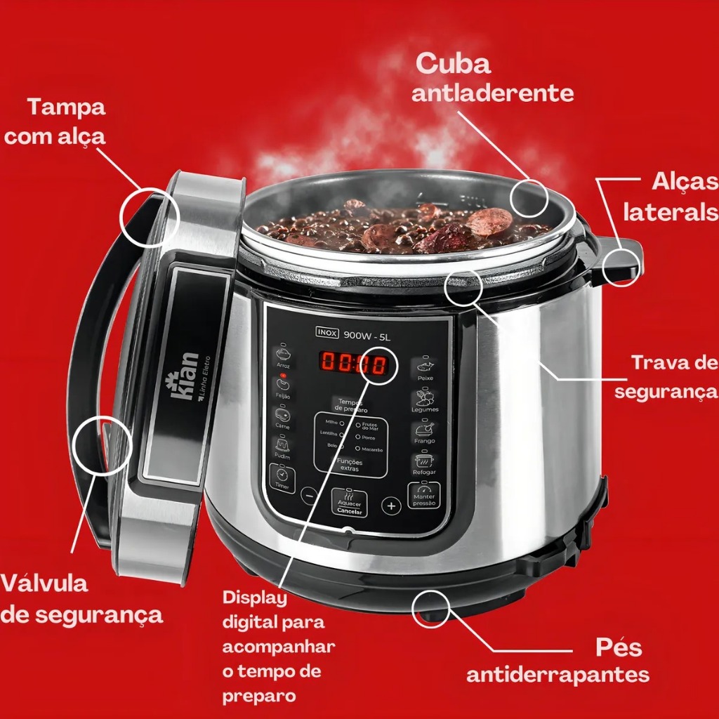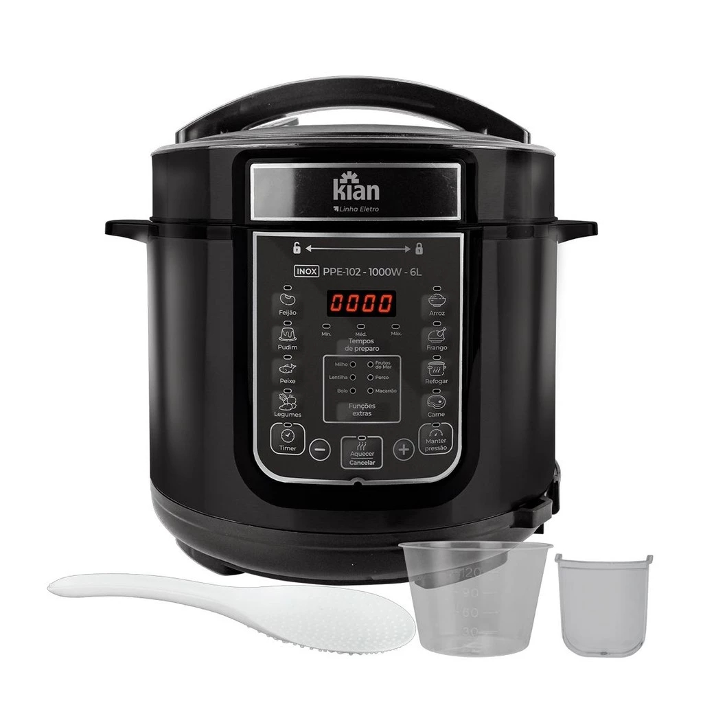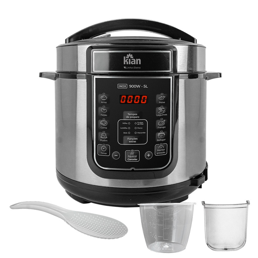 Panela de Pressão Elétrica Digital 5 litros Preta ou Inox - kian