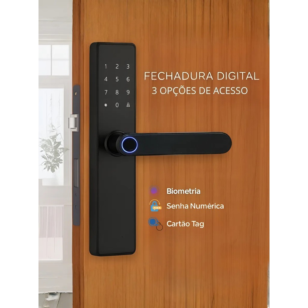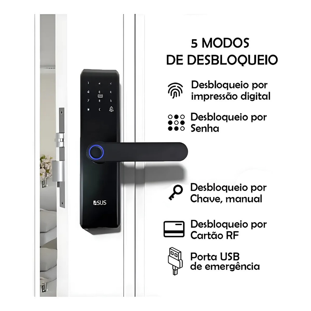 Fechadura Eletronica Digital Senha Biometria Cartao Preto ASUS