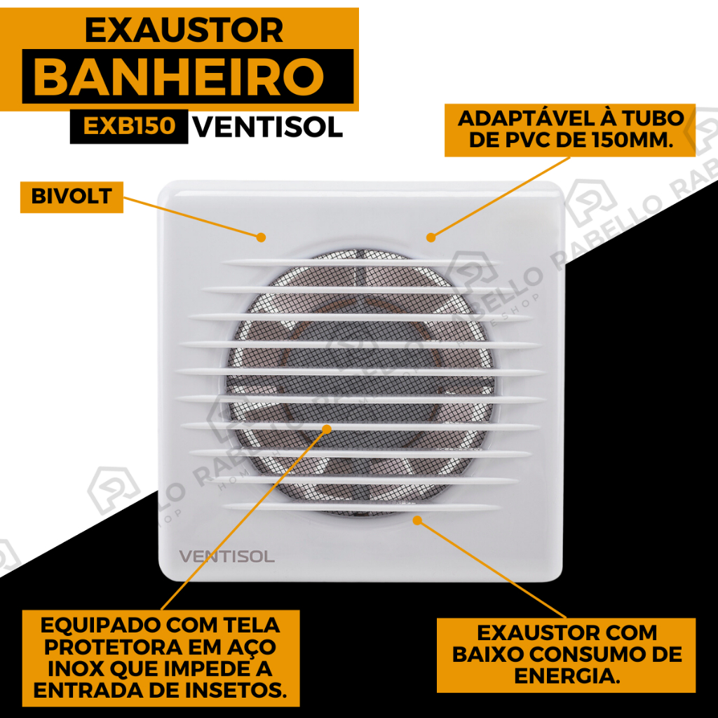 Exaustor Para Banheiro 15cm 150mm Com Grade Anti Insetos Bivolt Ventisol Bivolt
