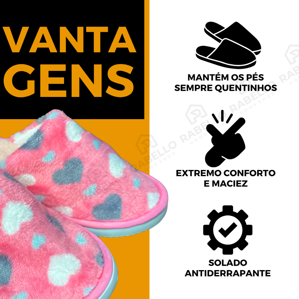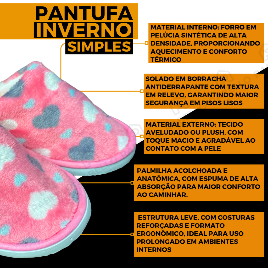 Pantufa Chinelo Antiderrapante de Inverno Adulto Pelúcia Quente Solado Confortável Forrada Peluciada