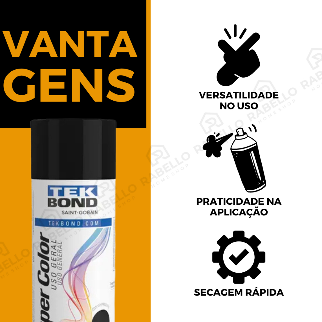 Tinta Spray Uso Geral Secagem Rápida Cores Tekbond 350ml Fosco Brilhante Multiuso Kit Premium Metal