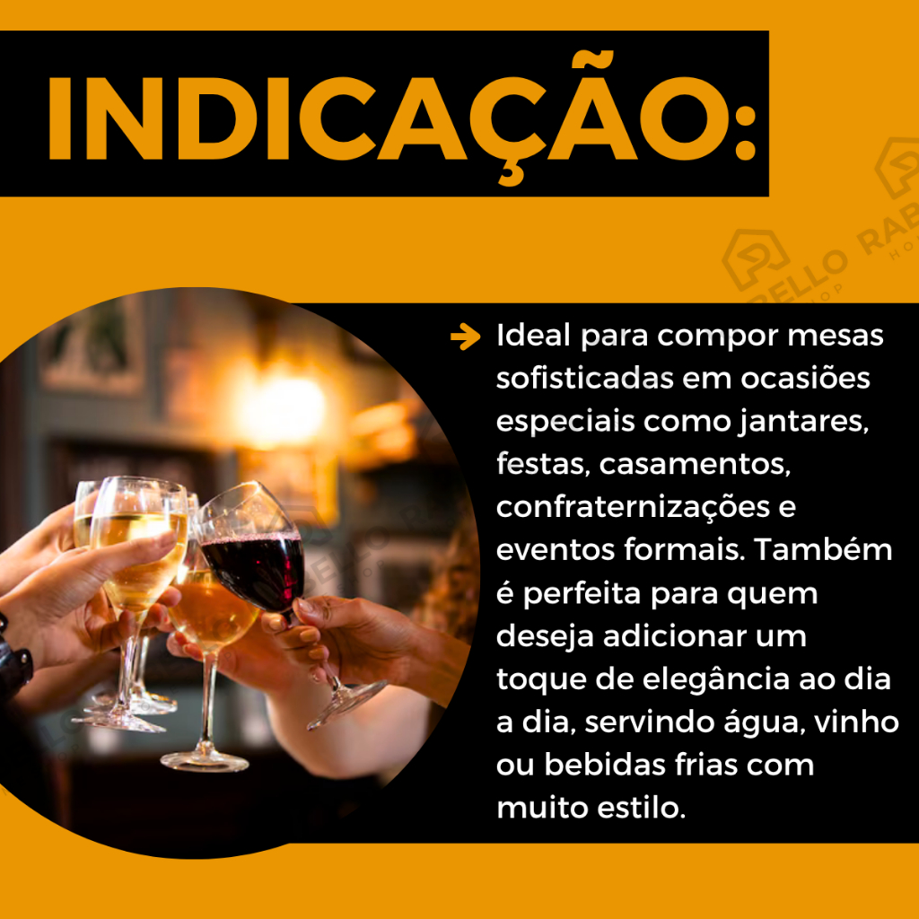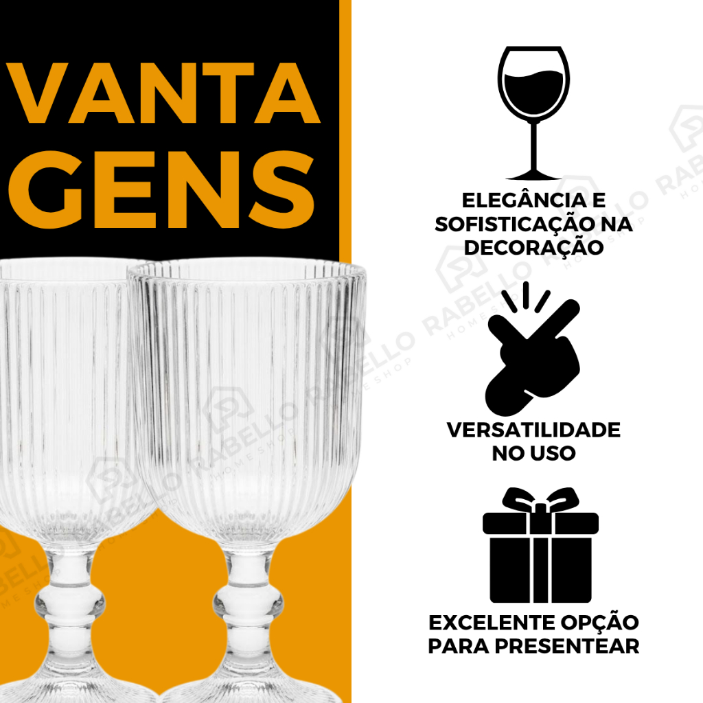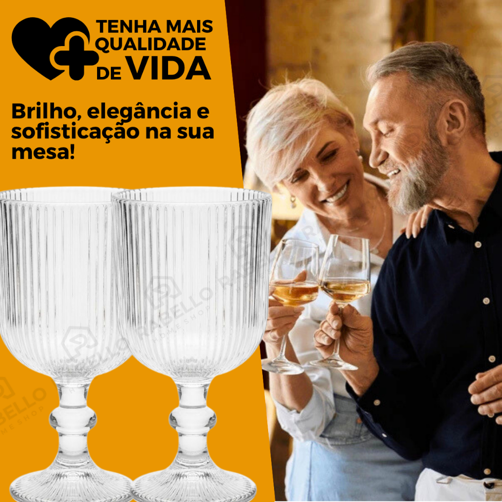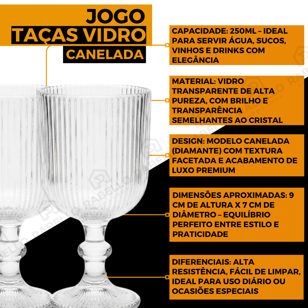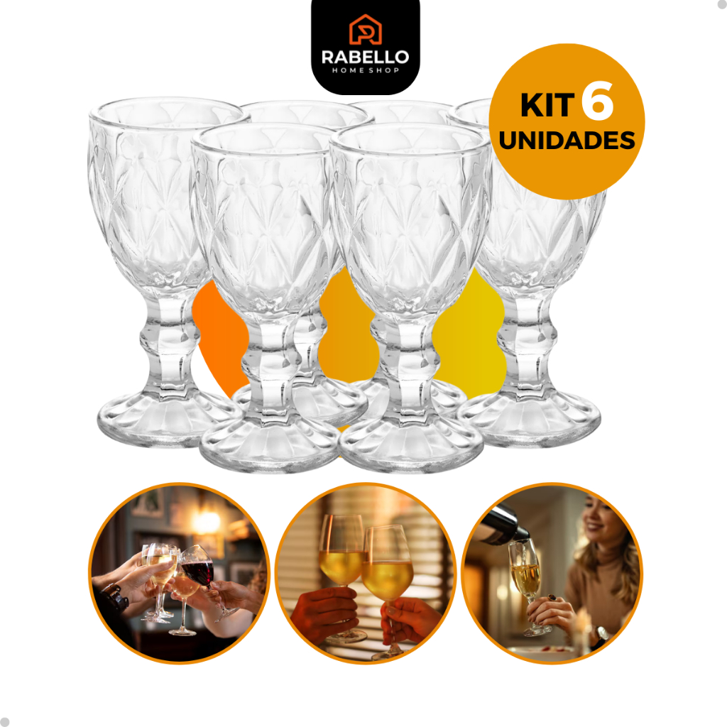 Jogo Taças de Vidro Transparente Cristal 250ml Diamond Diamante Luxo Premium para Água Drinks Suco