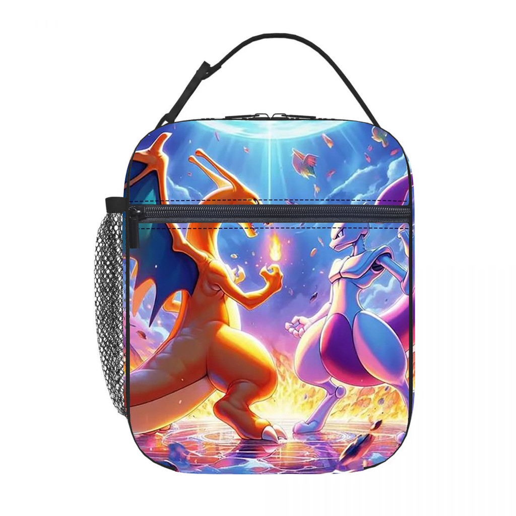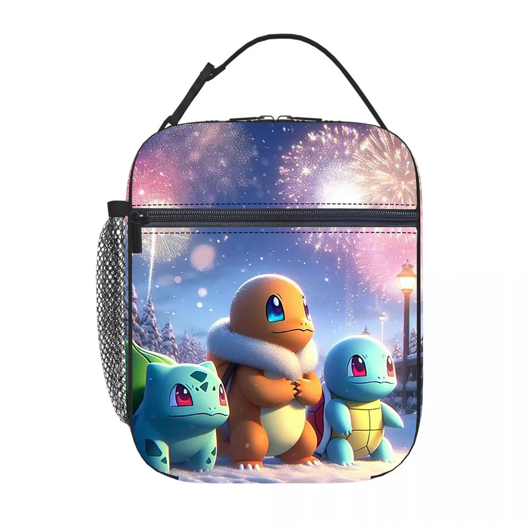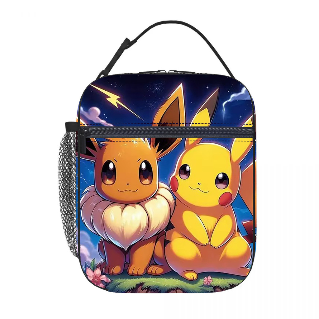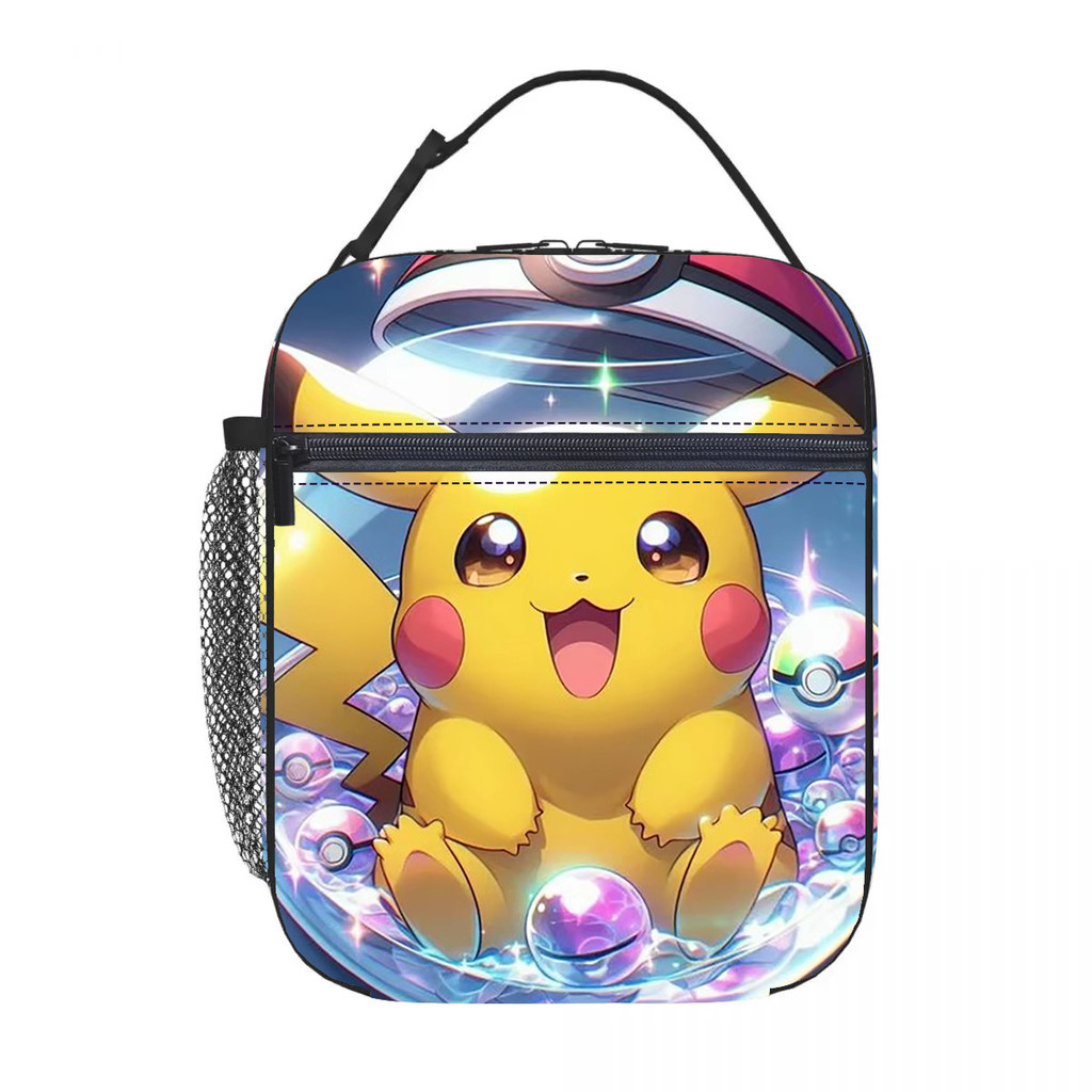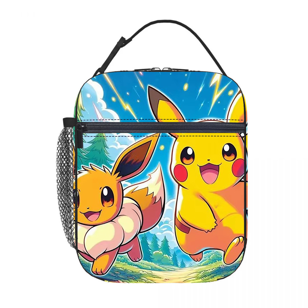 Pikachu anime infantil Lancheira térmica estampa por toda a peça Meninos meninas estudante Portátil Bolsa Bento
