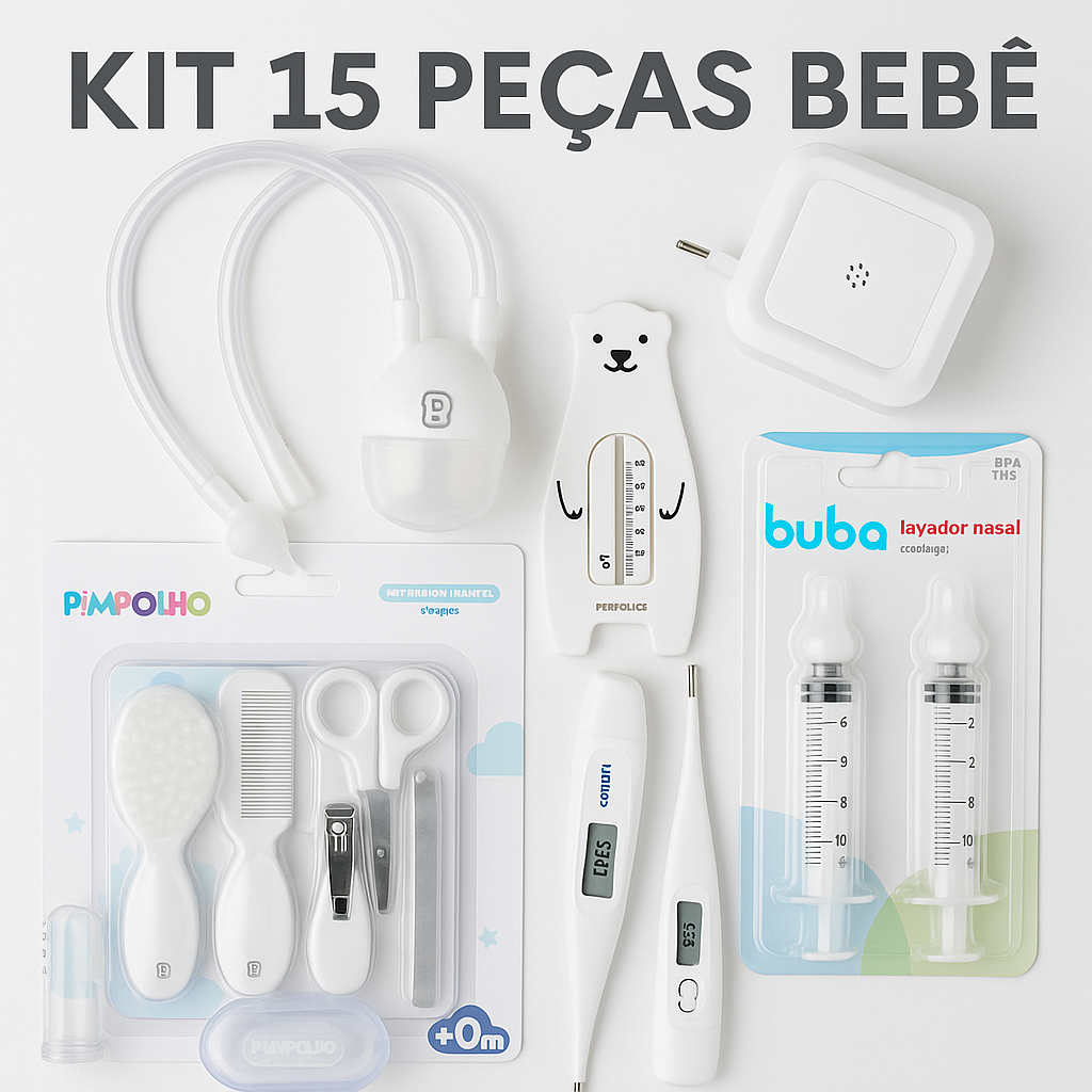 Kit Higiene bebê 15 peças completo Neutro Pimpolho e Buba