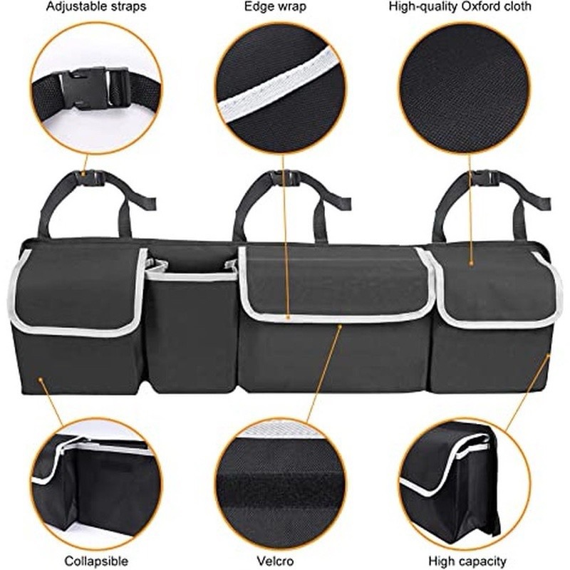 Organizador De Armazenamento De Carga Dobrável Para Porta-Malas De Carro/Alças De Fixação Ajustáveis Com Vários Comparti