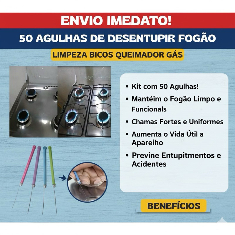 Agulhas de Desentupir Fogão Limpeza Bicos Queimador Gás