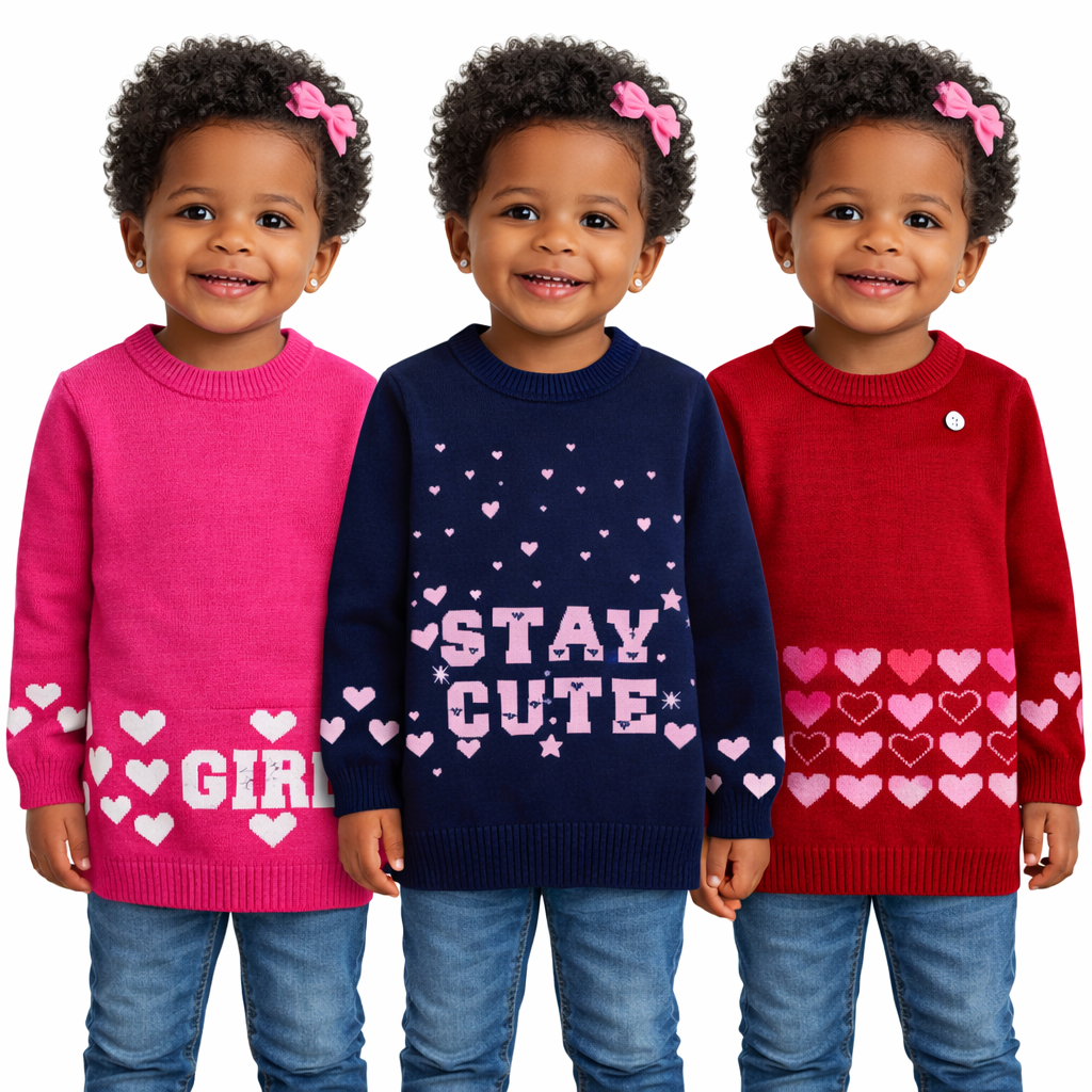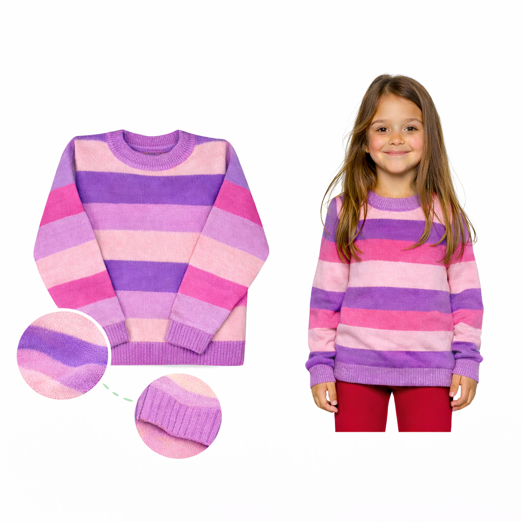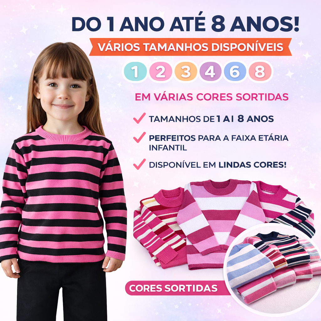 Kit 3 Blusas Tricot Infantil Menina Juvenil Premium Gola Redonda Manga Longa Meia Estação Inverno