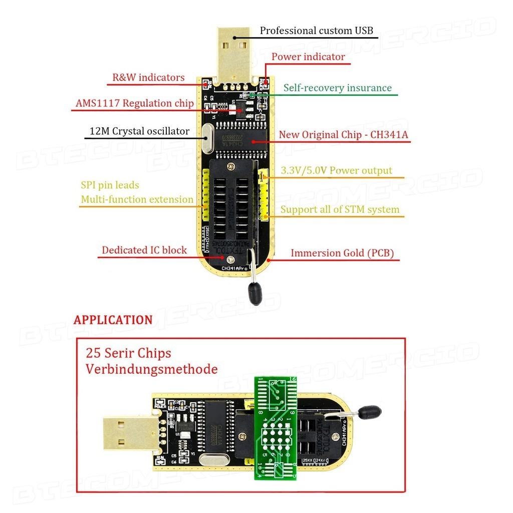 Programador Gravador Bios Eprom Usb Flash Pinça Soic8 X