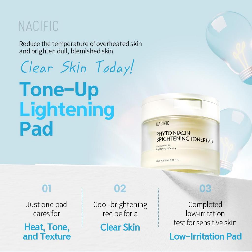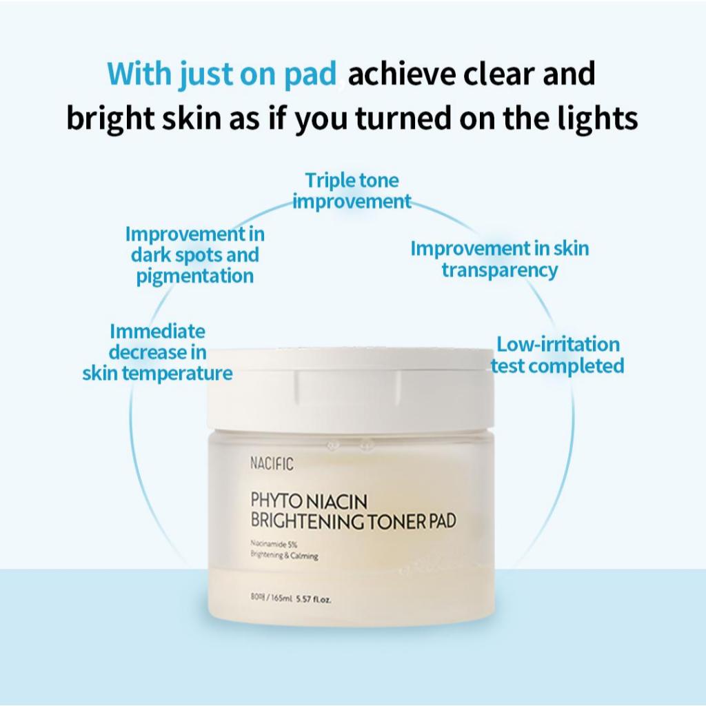 NACIFIC Phyto Niacin Brightening Toner Pad 160ml 80ea Aminoácido , Pele Opaca , Não Irritante