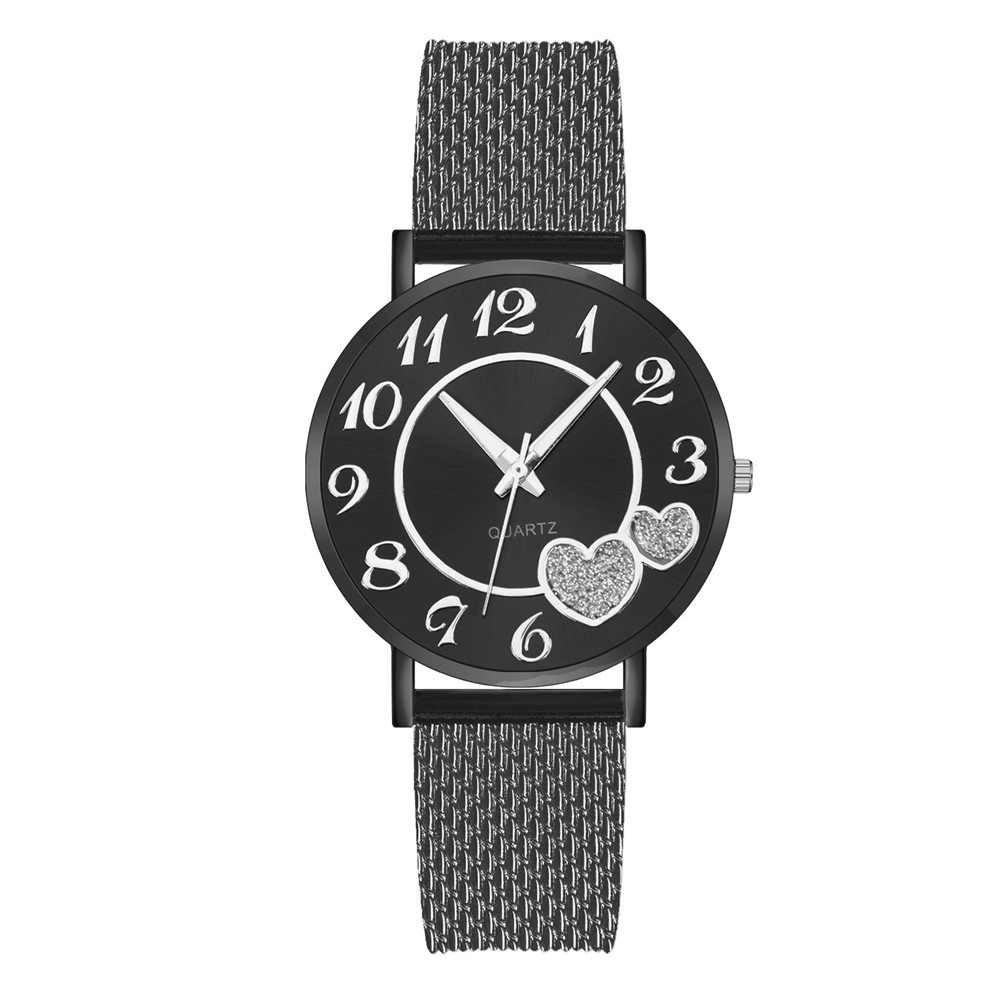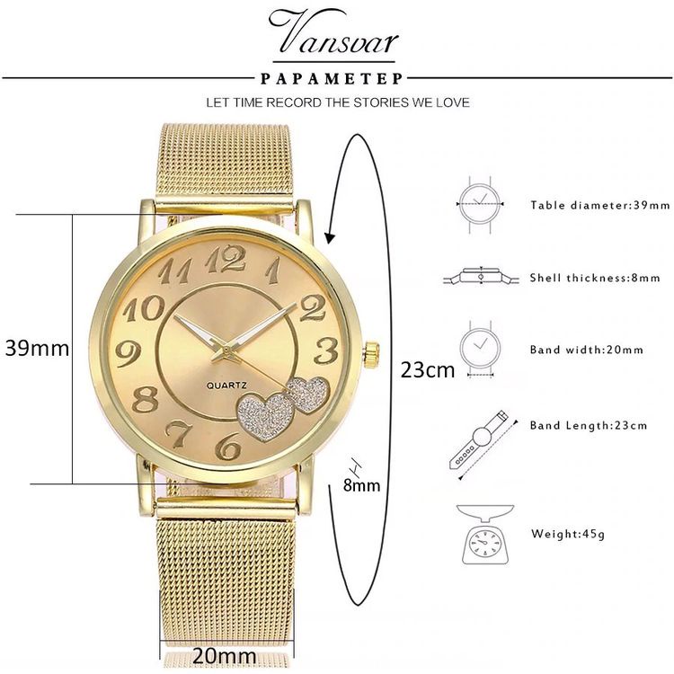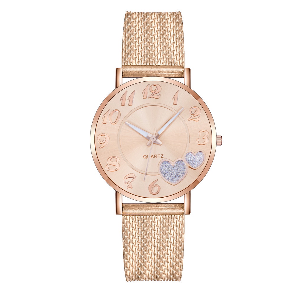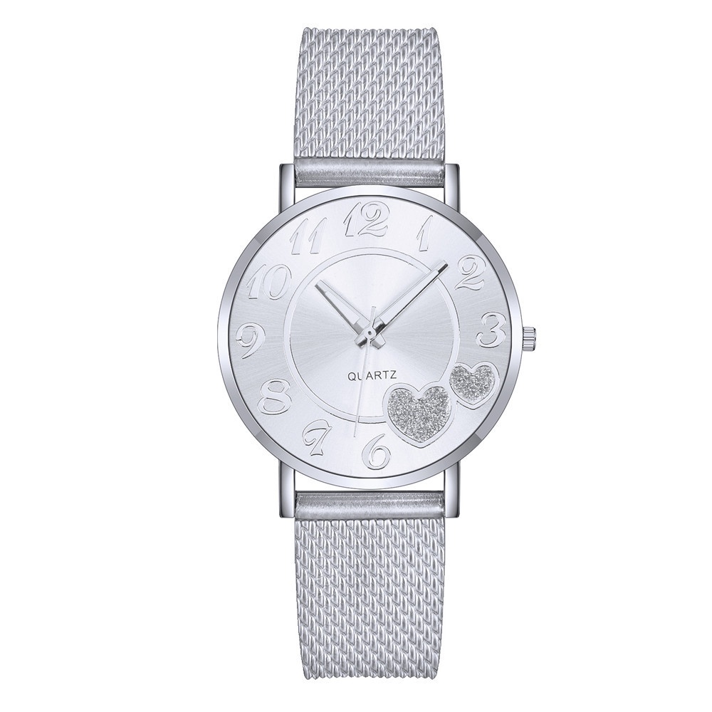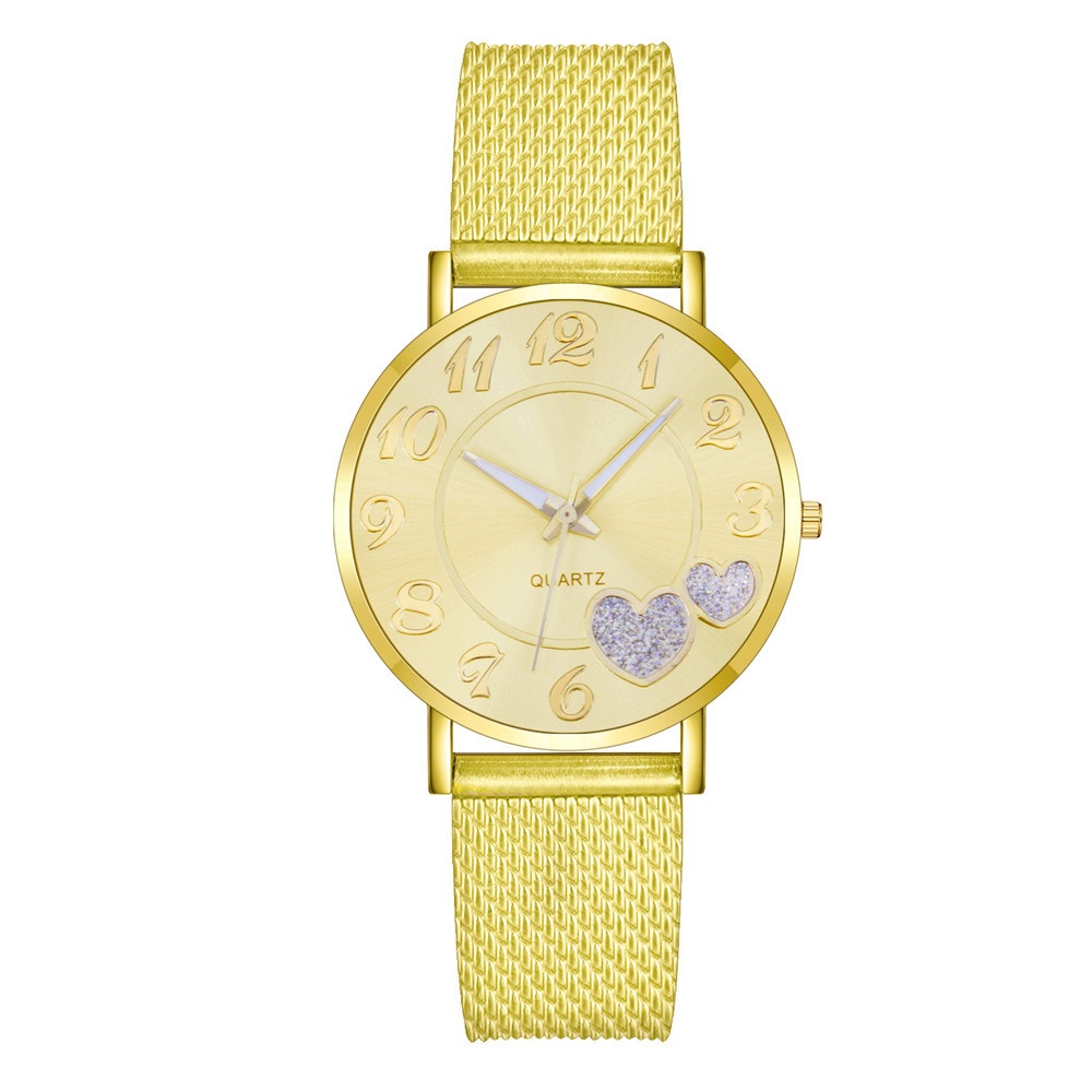 Feminino Ouro Prata Malha Amor Coração Dial Relógios De Pulso Das Mulheres De Aço Quartzo Relogio