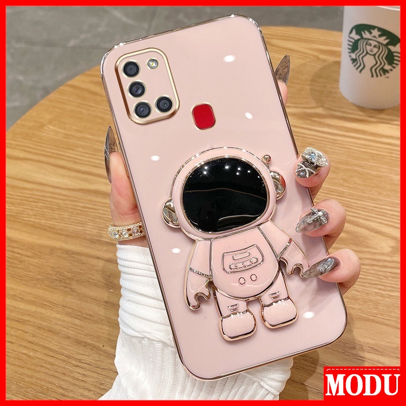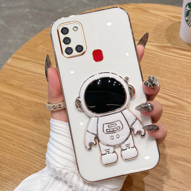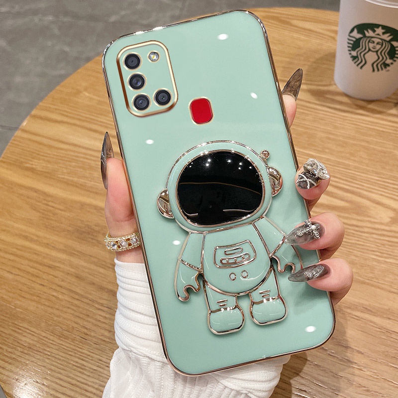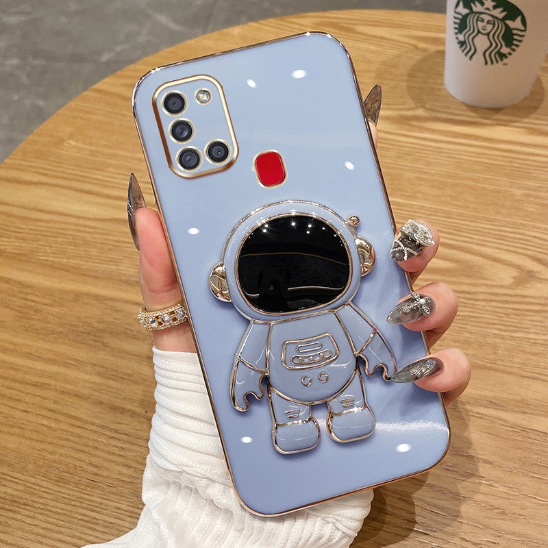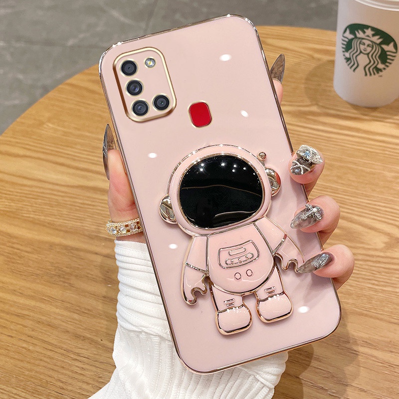 Capa De Luxo Para Samsung Galaxy A21S Macaron Cor Com Suporte De Astronauta De Alta Qualidade