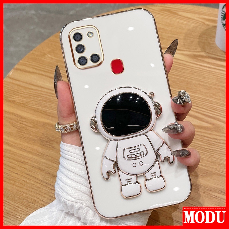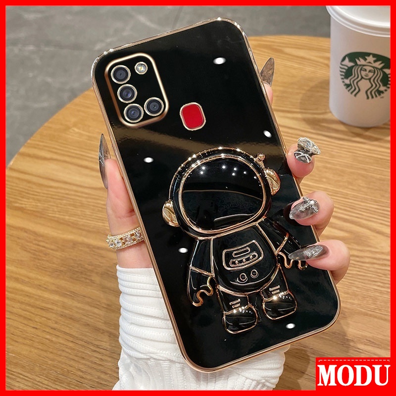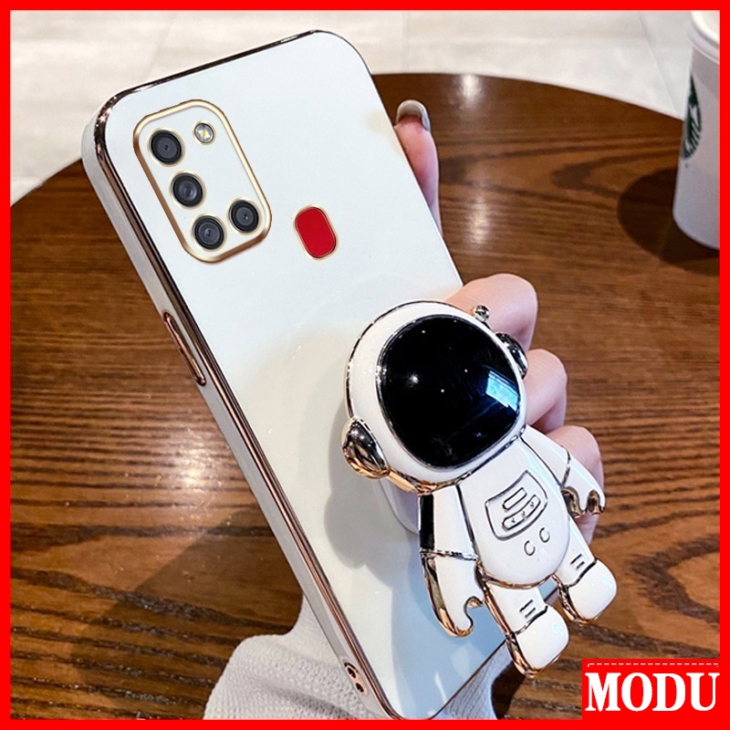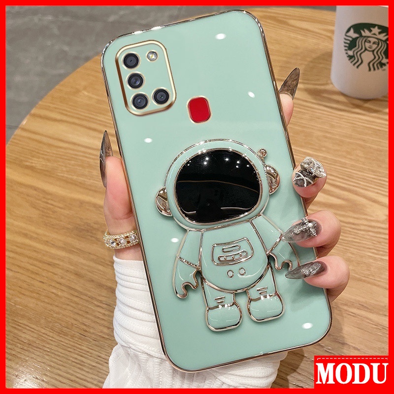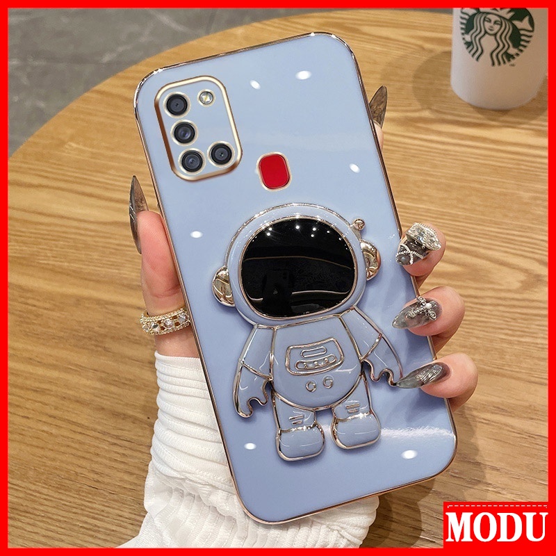 Capa De Luxo Para Samsung Galaxy A21S Macaron Cor Com Suporte De Astronauta De Alta Qualidade