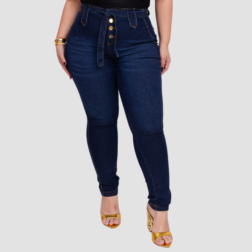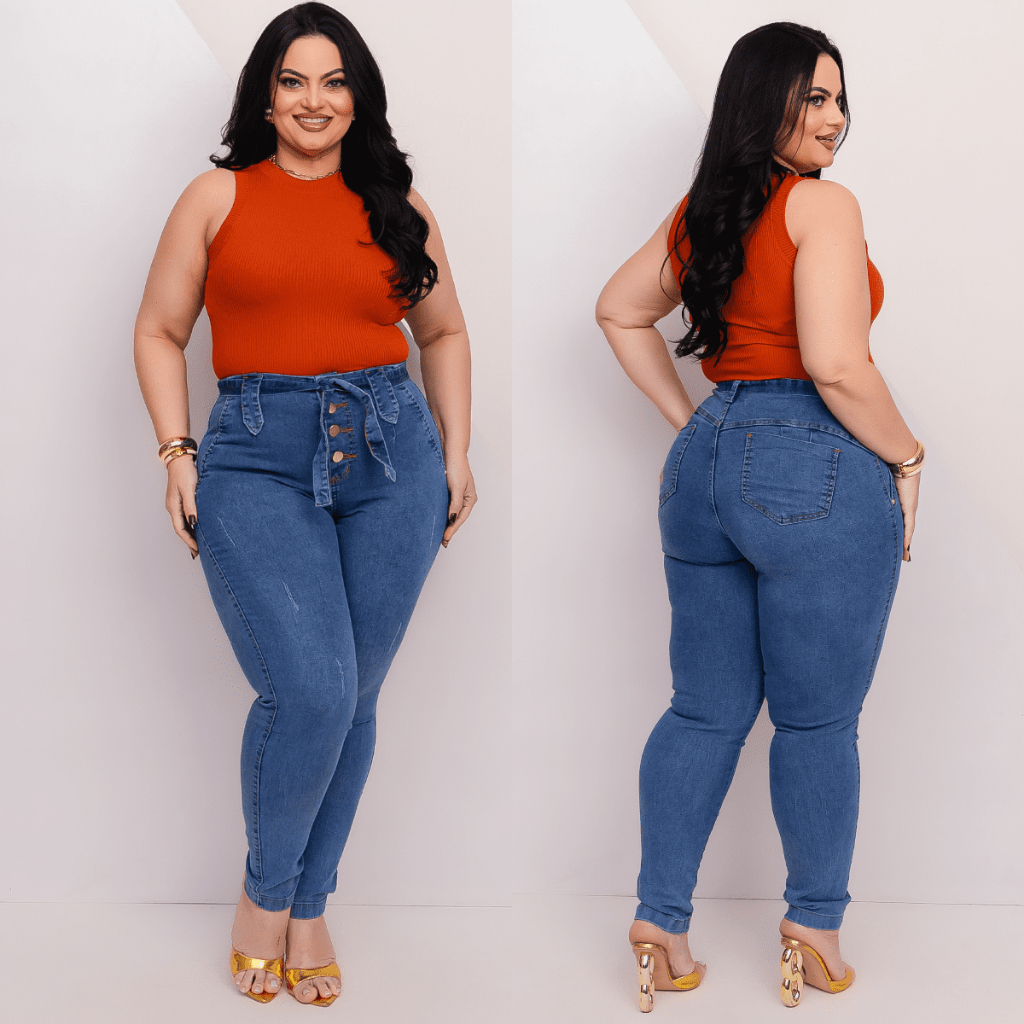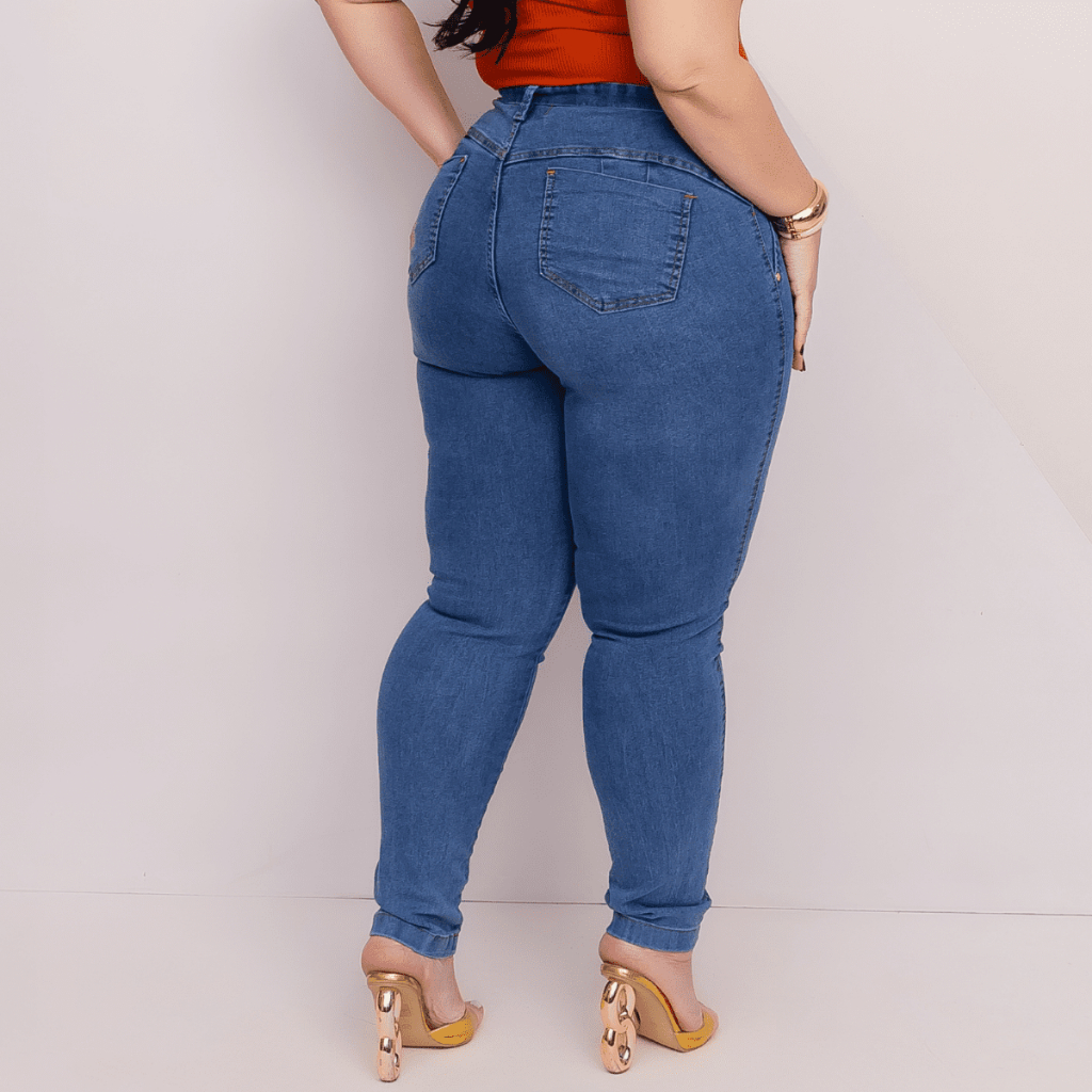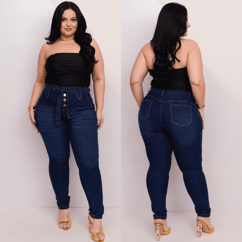 Calça Jeans Feminina Plus Size Cintura Alta Premium Com Lycra