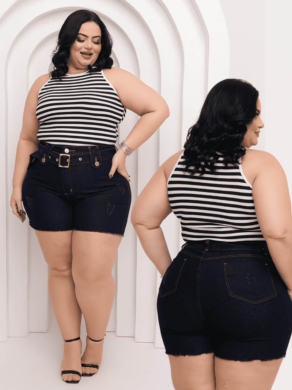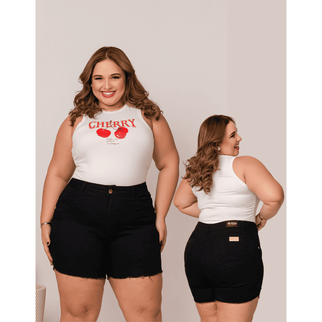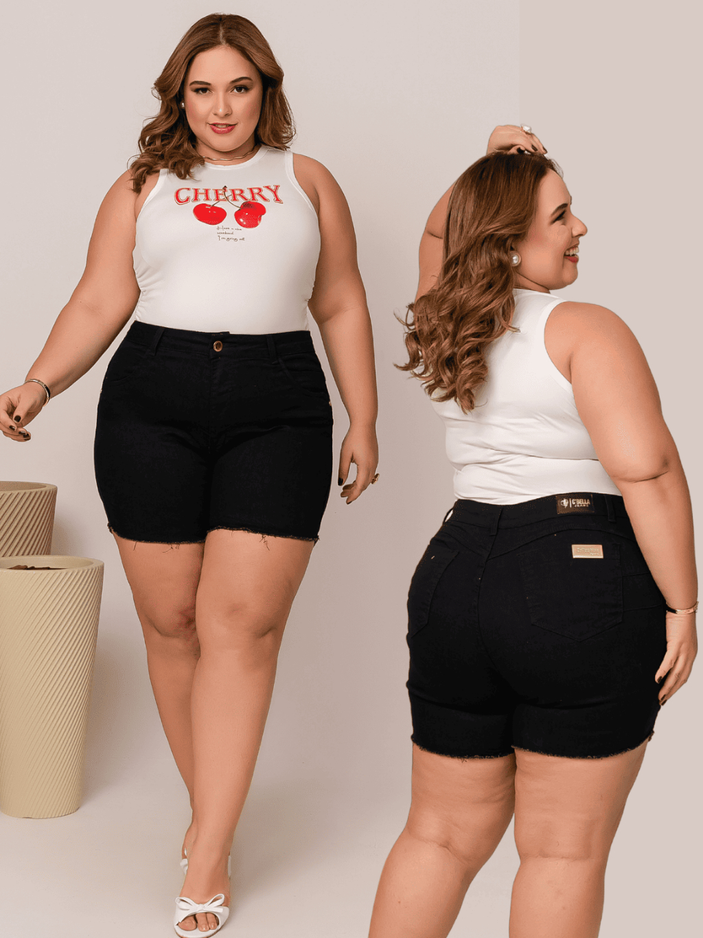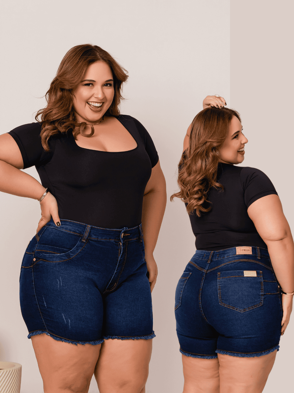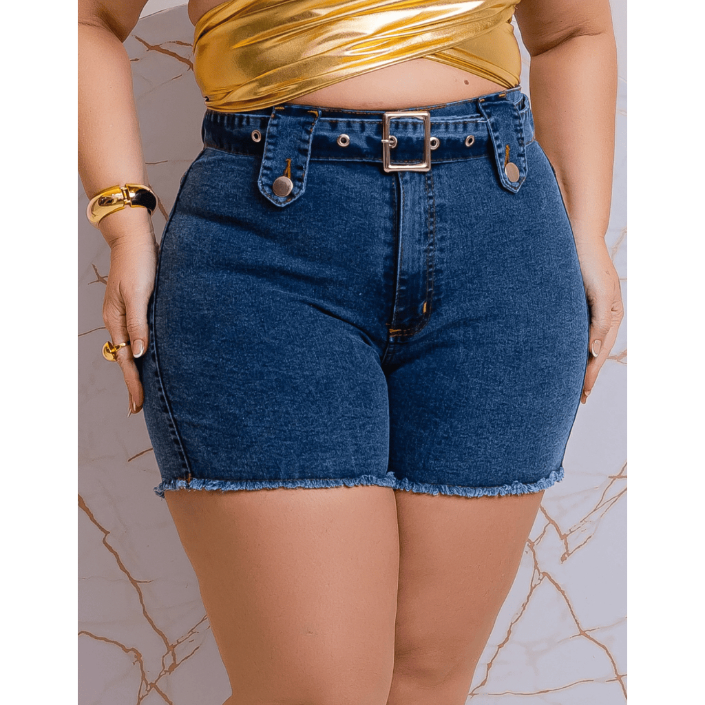 Shorts Jeans Plus Size Cintura Alta Hot Paint - Bermuda Feminina Com Lycra