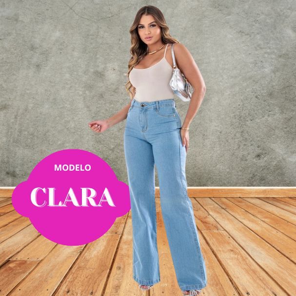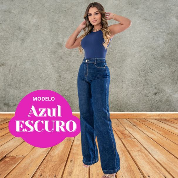 LEVE DEFEITO Calça Jeans WIDE LEG Elastano Cintura Alta Efeito 100% Algodão