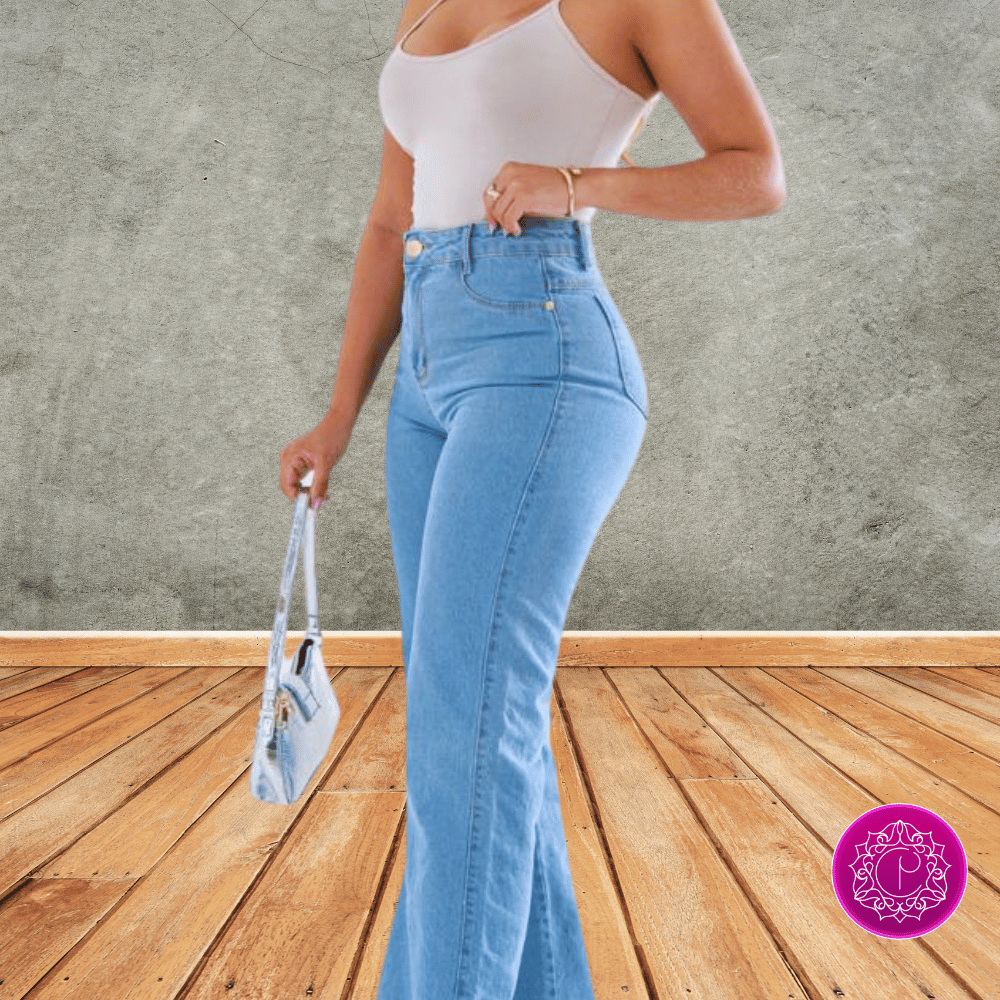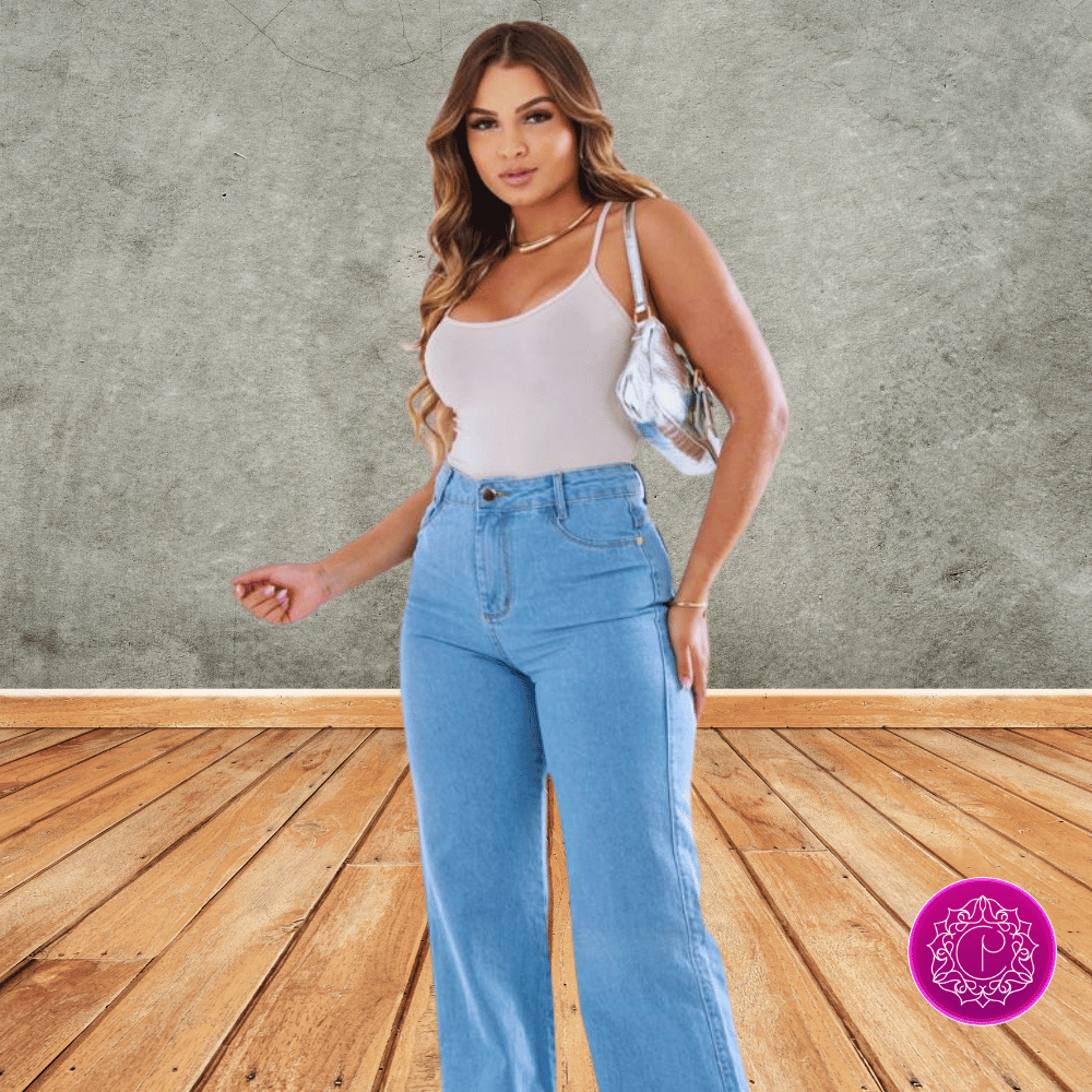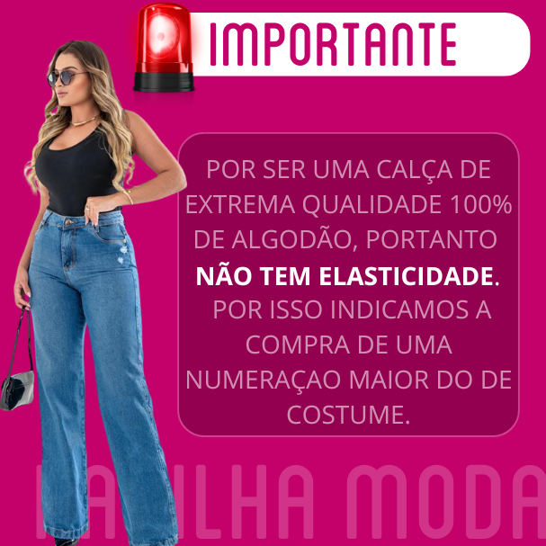 Calça Feminina Wide Leg Claro 100% algodão Cintura Alta Efeito Levanta Bumbum