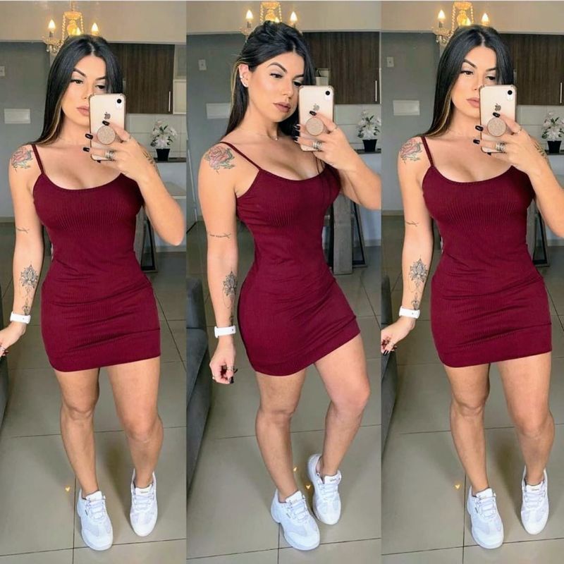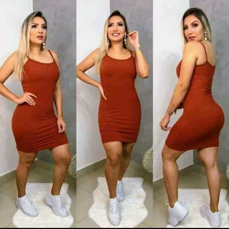 Vestido Curto Canelado Alcinha Modelo Tubinho 36 ao 42