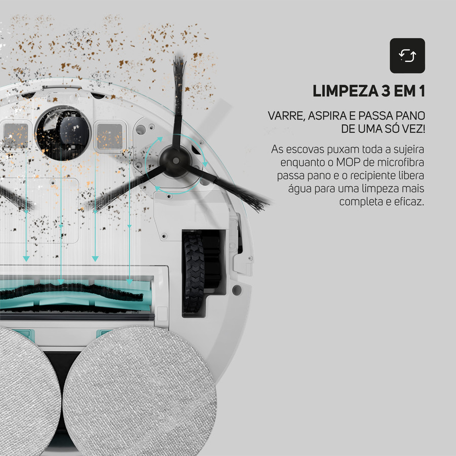 Robô Aspirador de Pó WAP Robot W4000 48W Com Base Self-Cleaning Branco e Turquesa