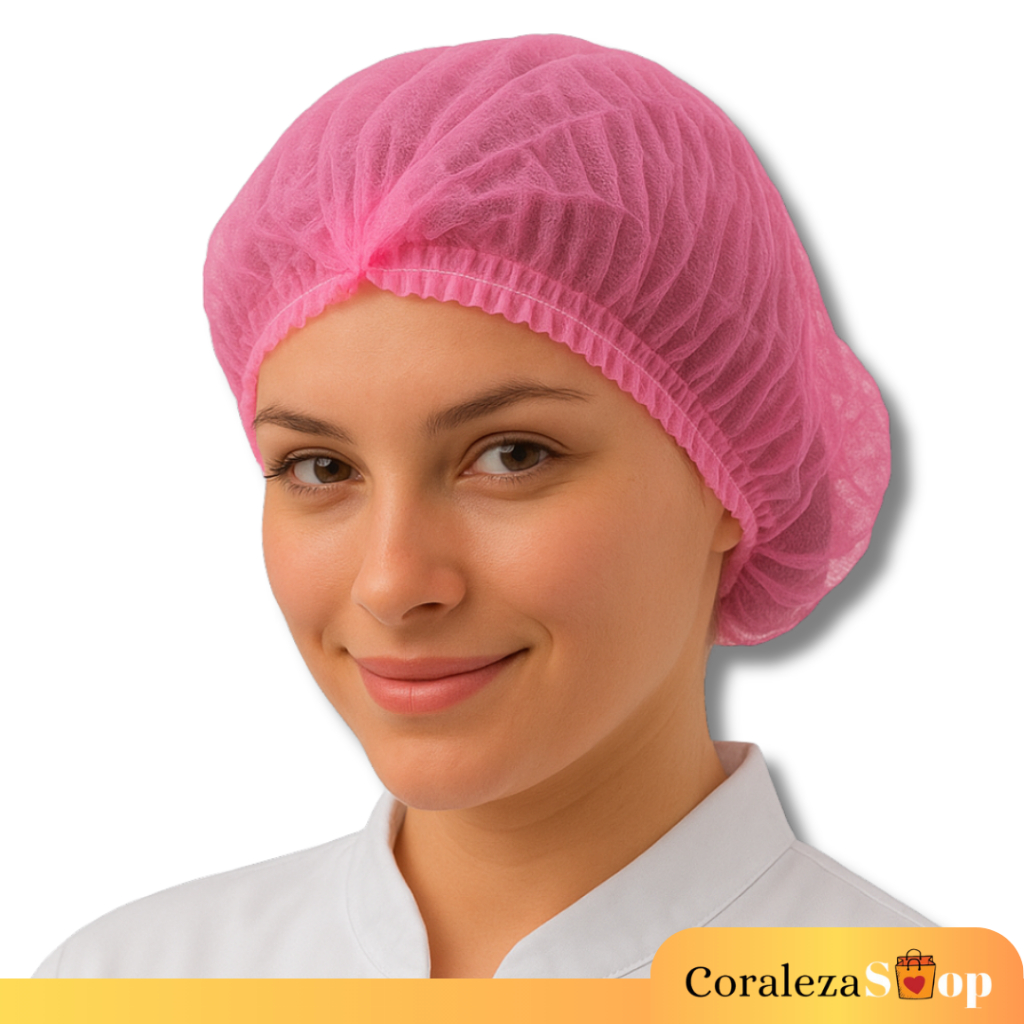 Kit Rosa 100 Touca TNT+ 100 Luva Nitrilica+ 100 Máscara Descartável Tripla Camada Com Clipe Nasal