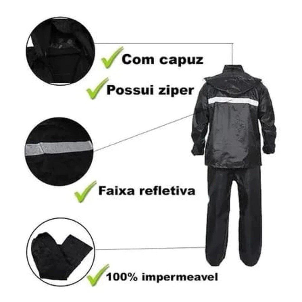 Capa de Chuva Conjunto Completo Para Motoqueiro Adulta Masculina Com Faixa de sinalizao E Capuz/92872