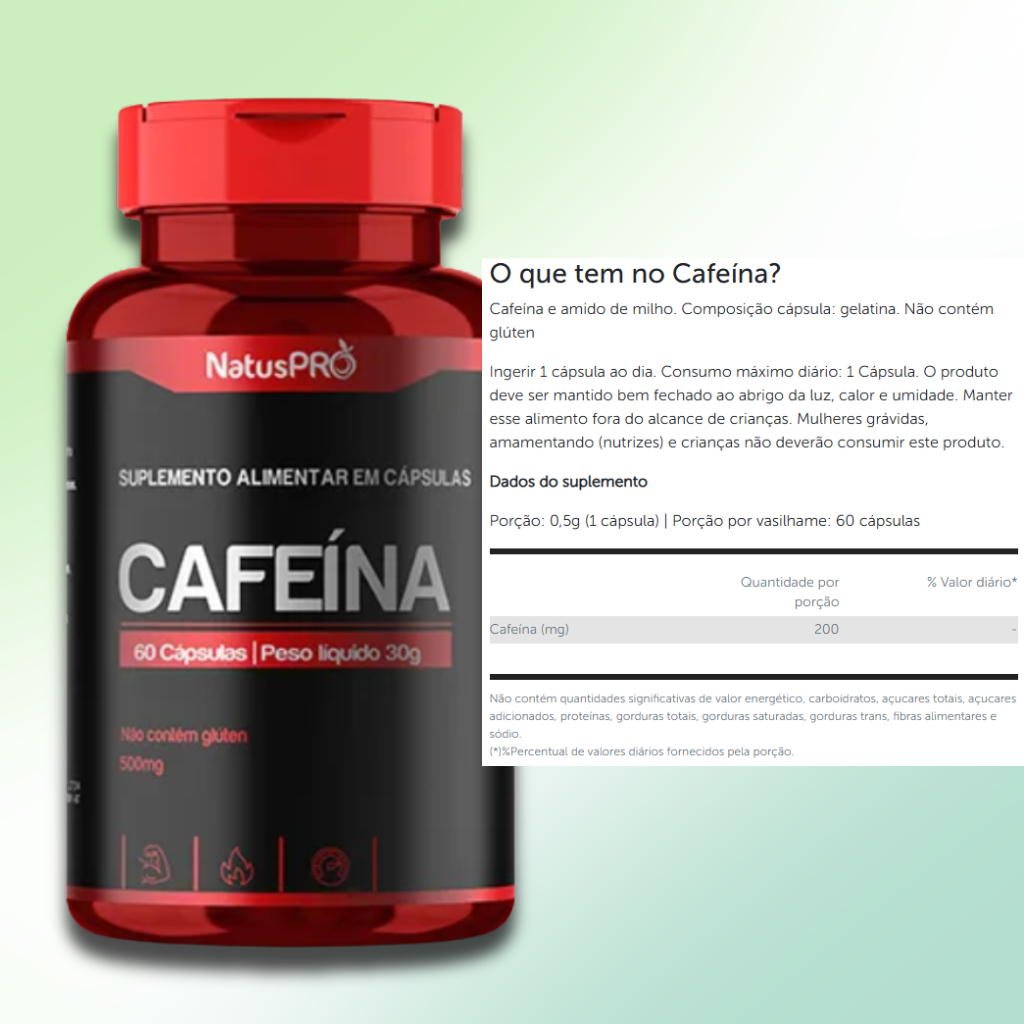 Cafeína 500mg 60 Cápsulas 100% Natural - Original NatusPro