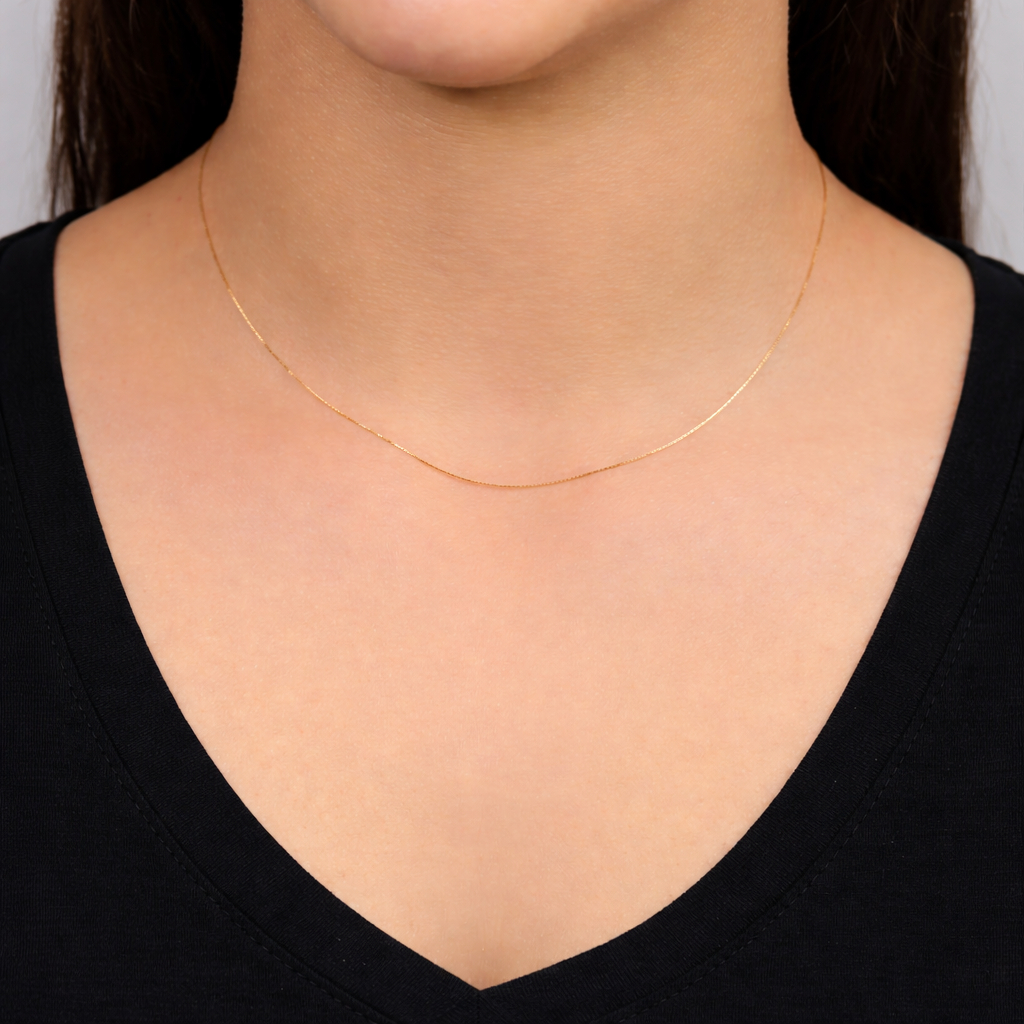 Corrente Cordão Veneziana Correntinha Fina 45Cm Banhado A Ouro 18K Premium